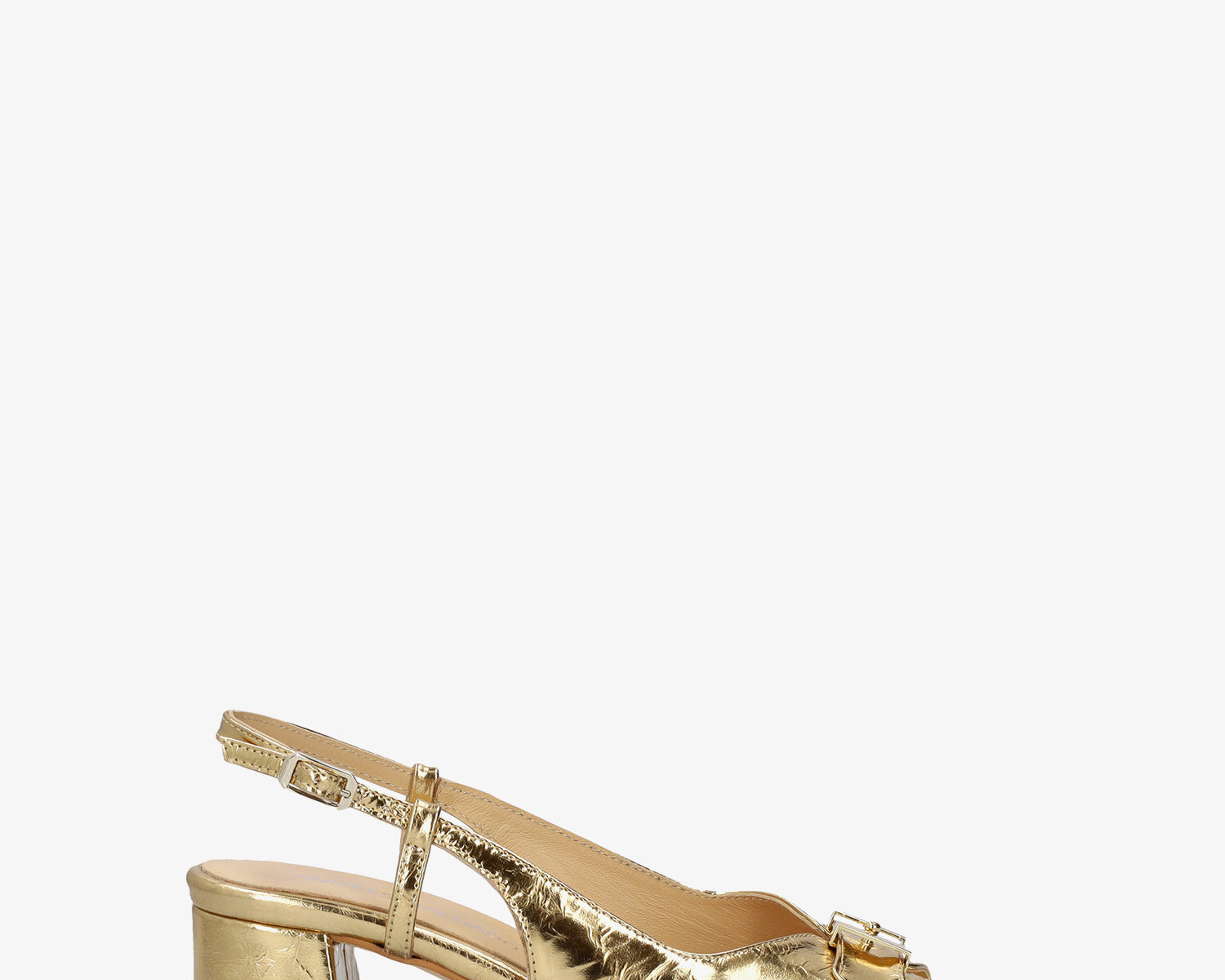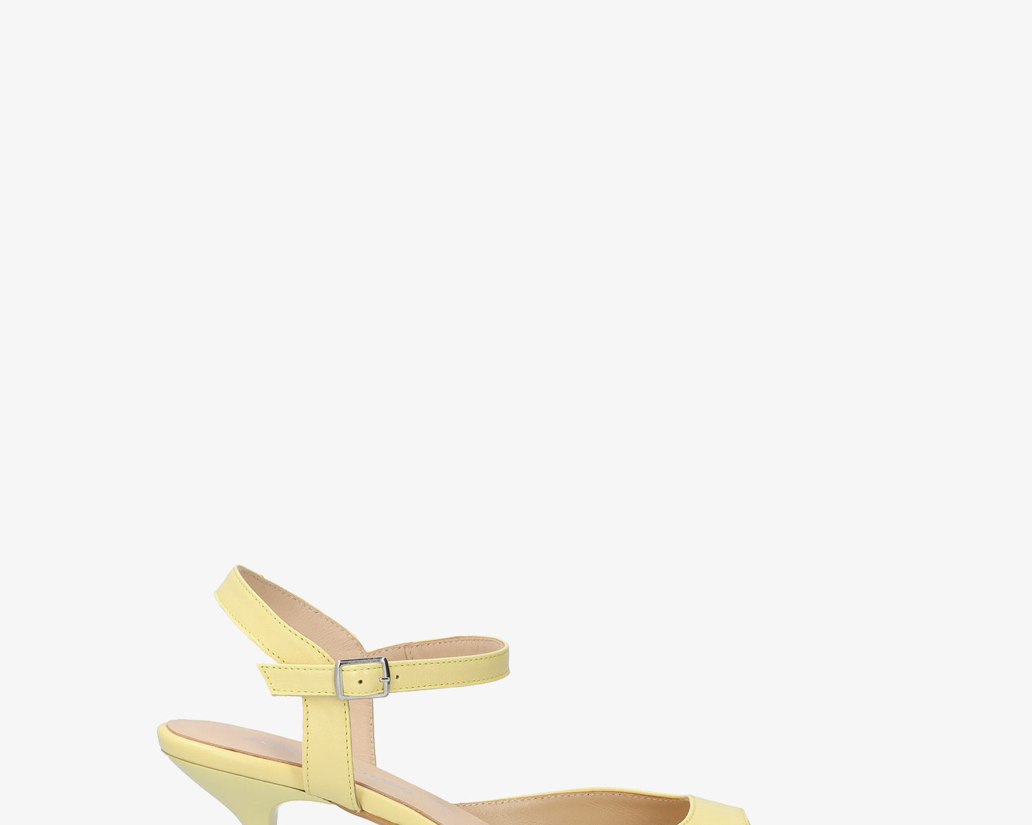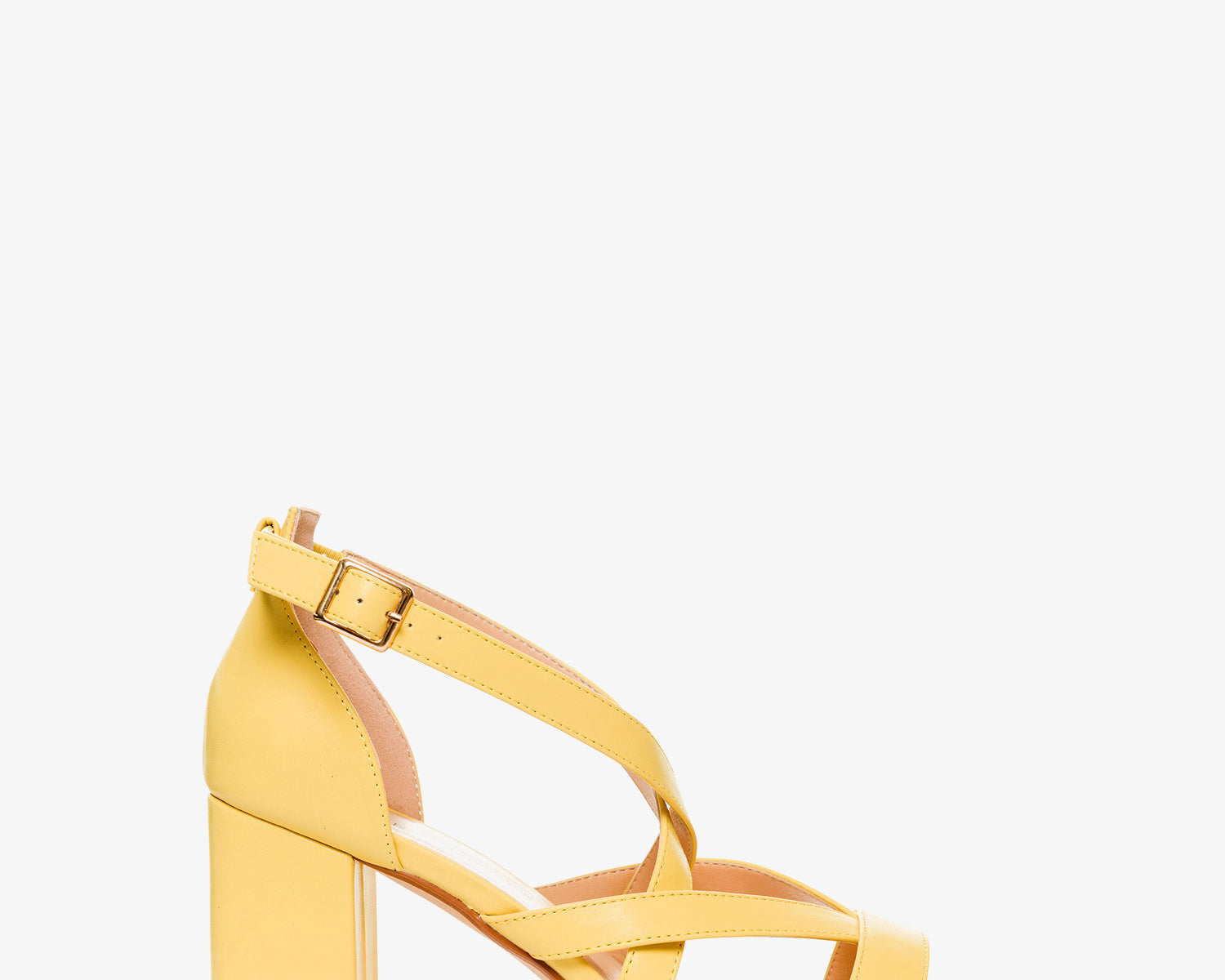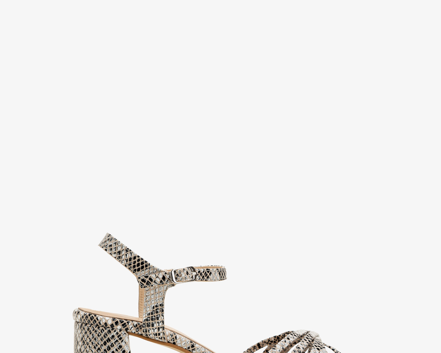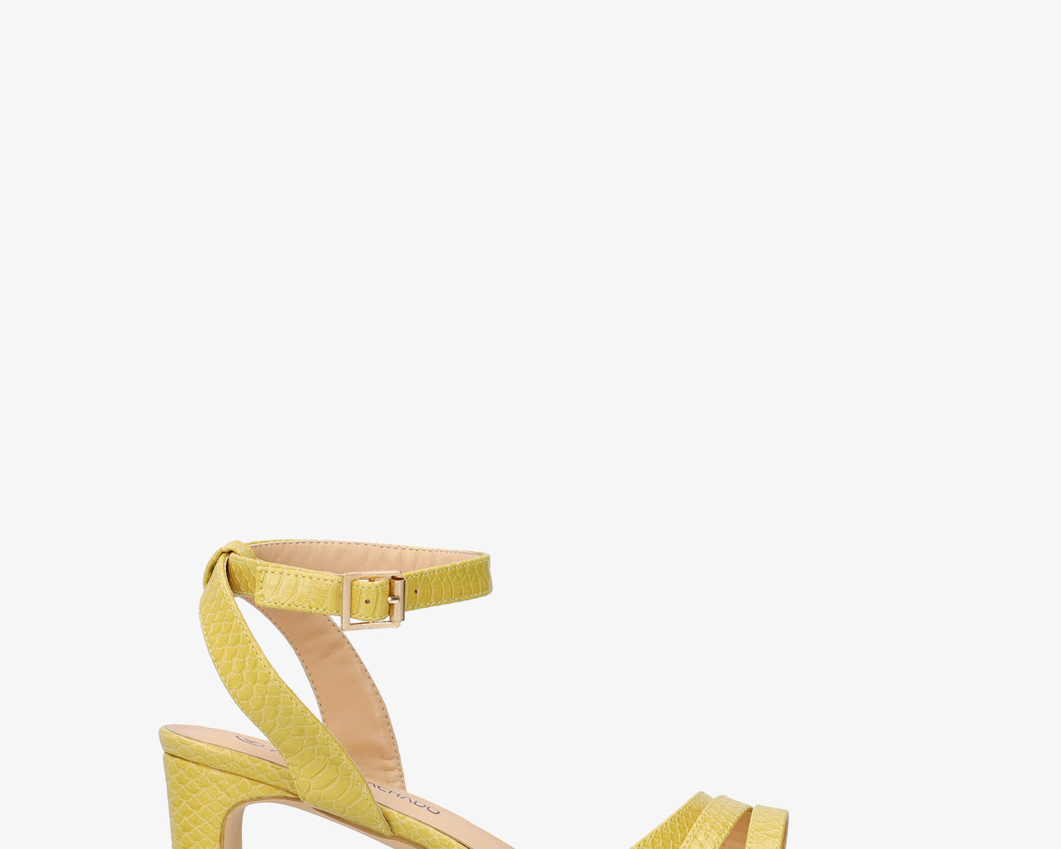 Sandalia en soft snake mostaza con tacón semi-cuadrado