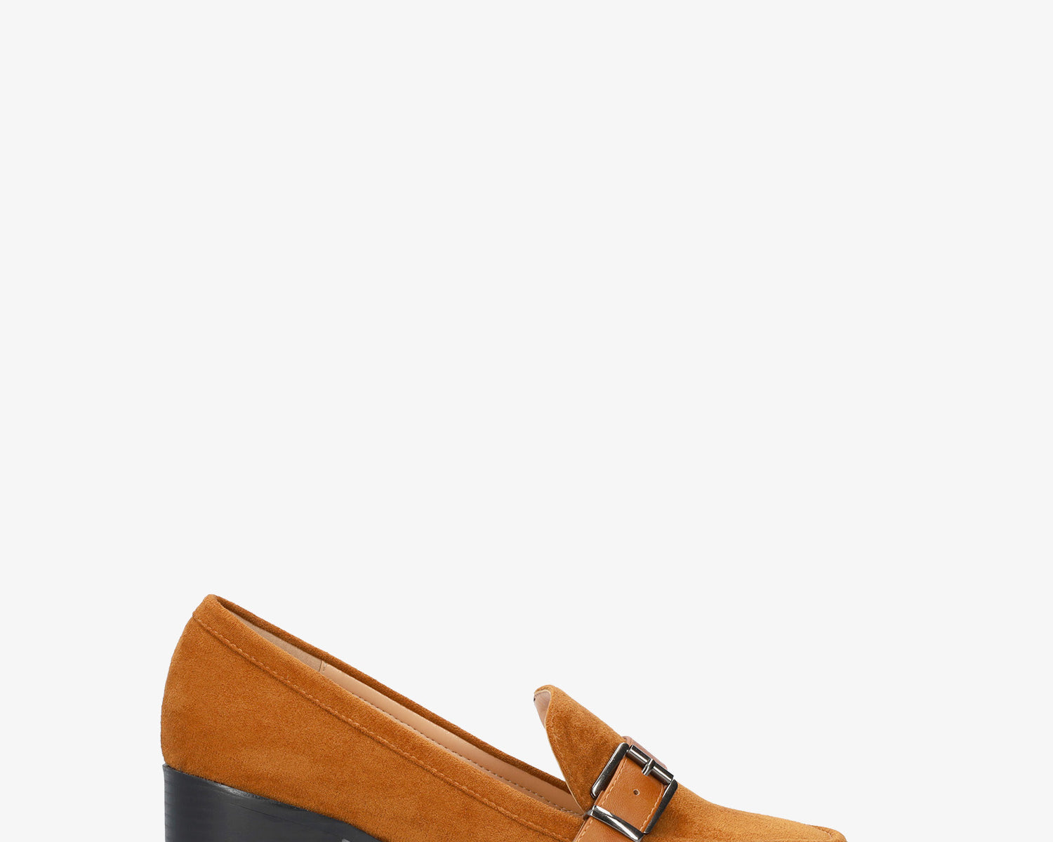 Mokassin mit absatz aus wildlederimitat in der farbe kamel