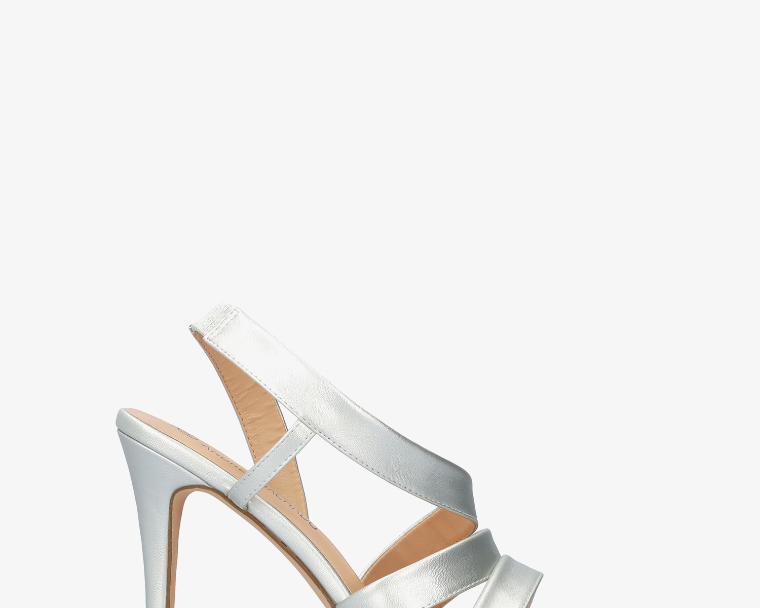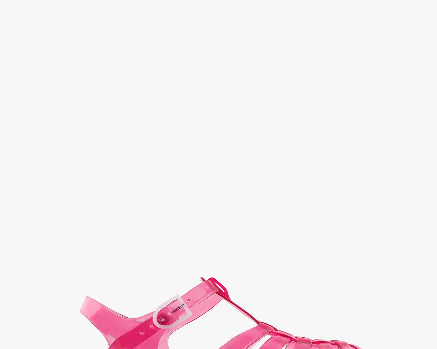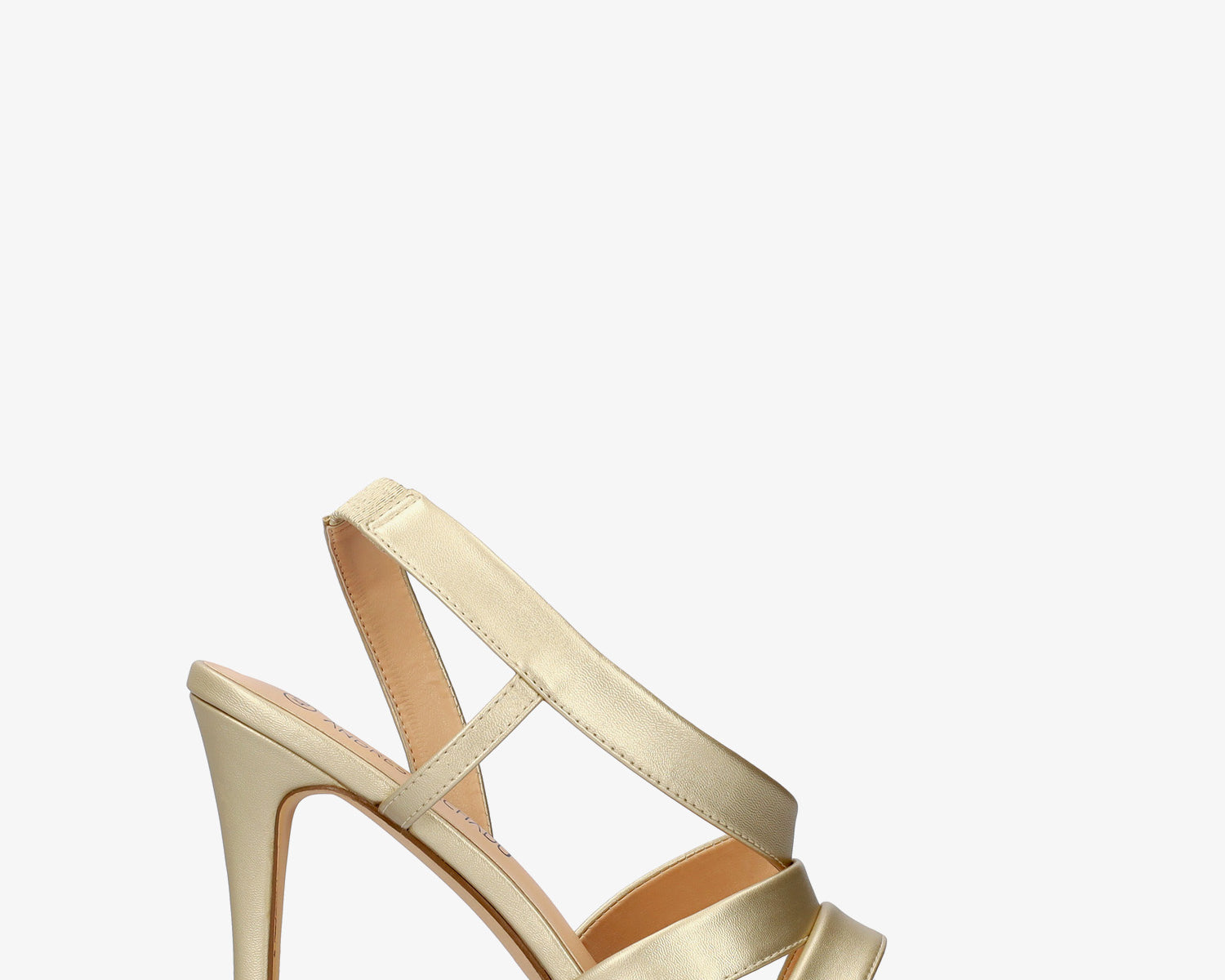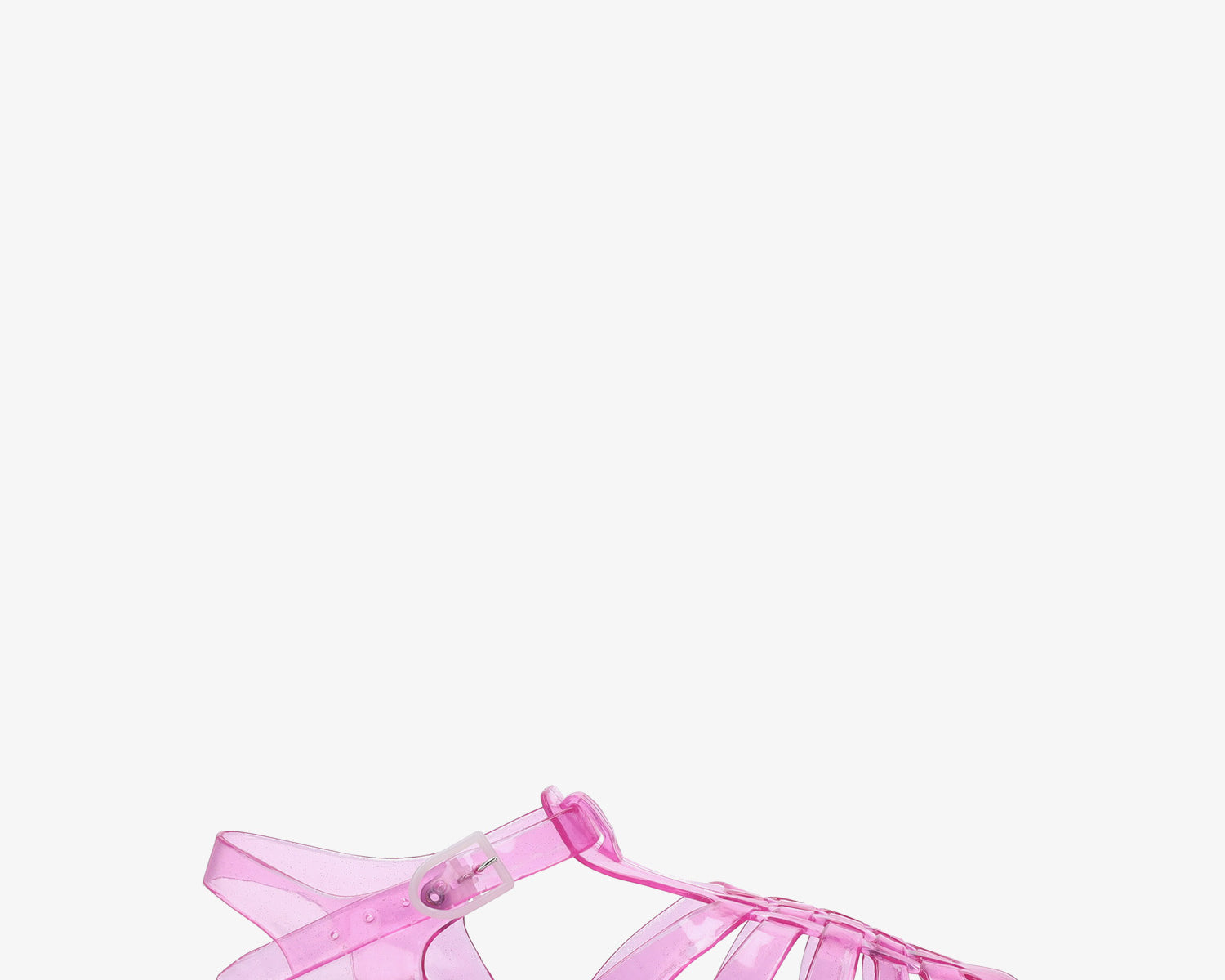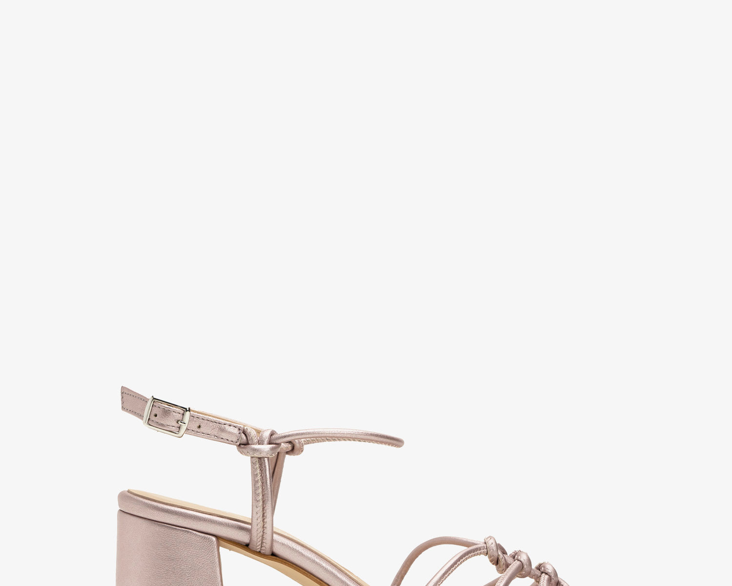 Sandalen aus rosafarbenem leder mit metallikeffekt