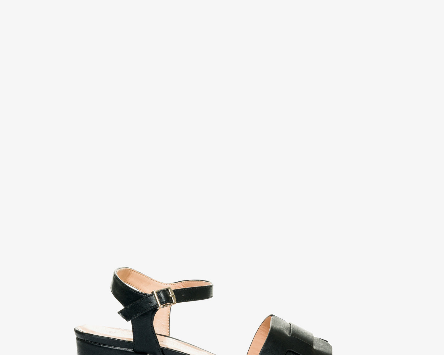 Schwarze textilsandale mit korkeffektabsatz