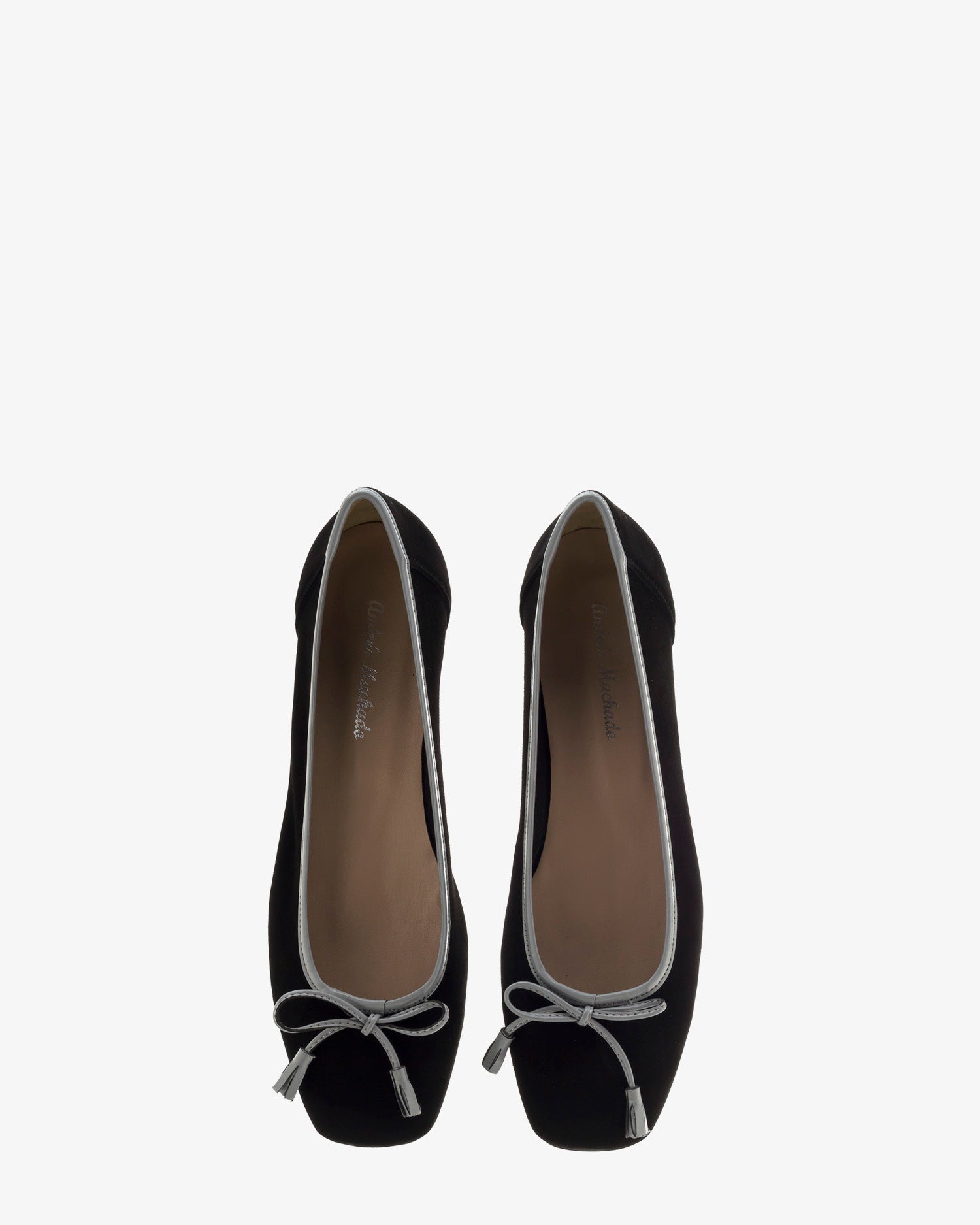 Ballerinas aus schwarzem rauleder mit schleife -made in spain-
