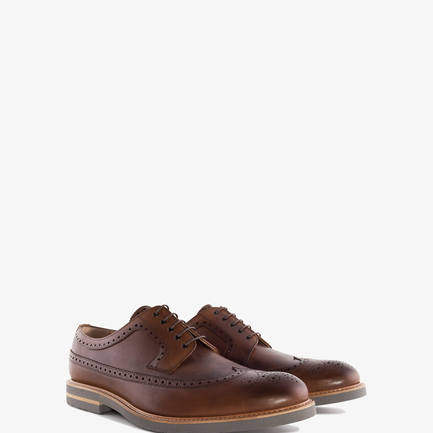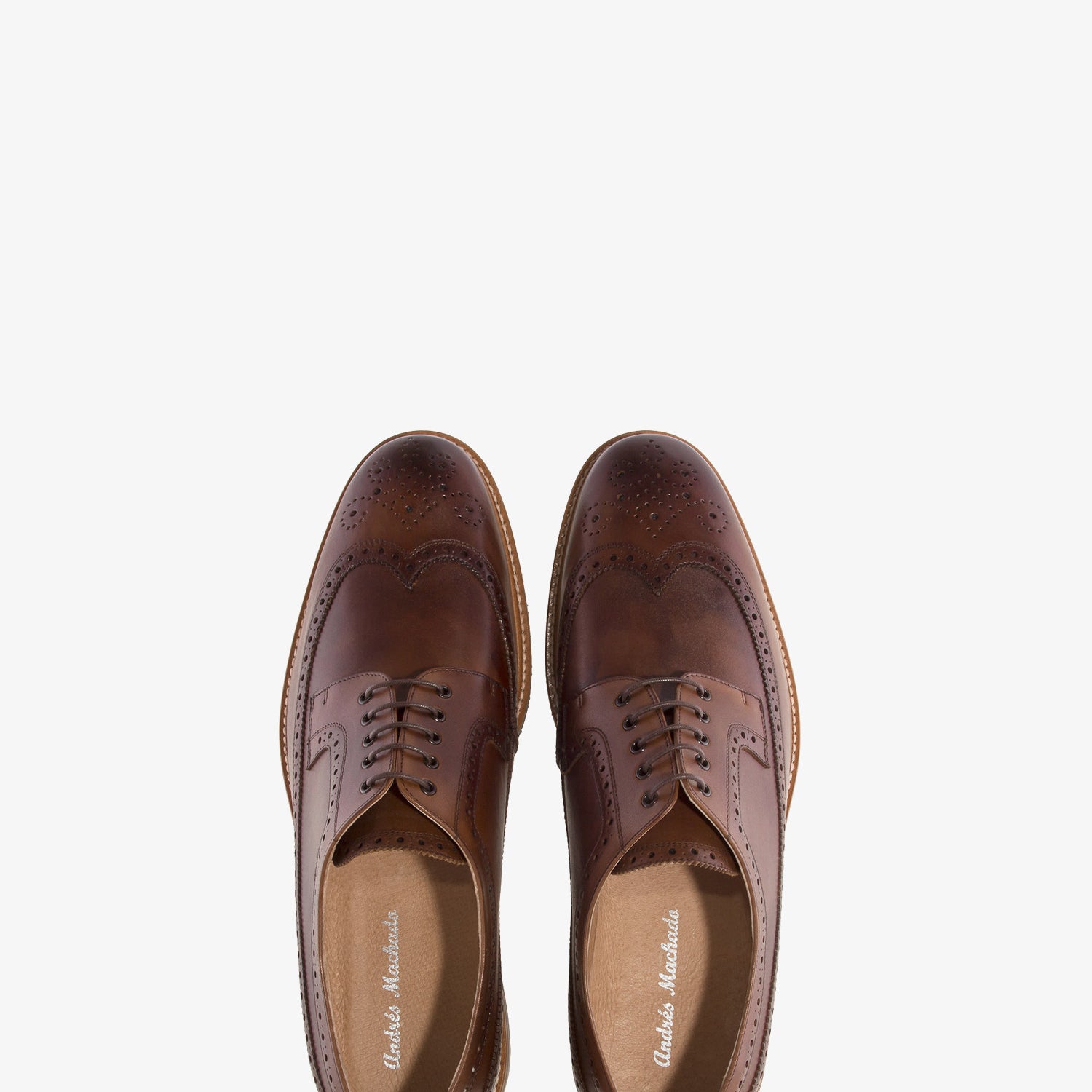 Herrenschuh im Oxford-Stil aus braunem Leder mit passendem Schnürverschluss. Charakteristisch für diesen Stil sind die abgehackten Kanten am Spann und an den Seiten. Innenfutter aus braunem Leder. Schwarze, genähte EVA-Gummisohle. Spanische Herstellung. Kleine Größen von 37 bis 40. Große Größen von 47 bis 52.