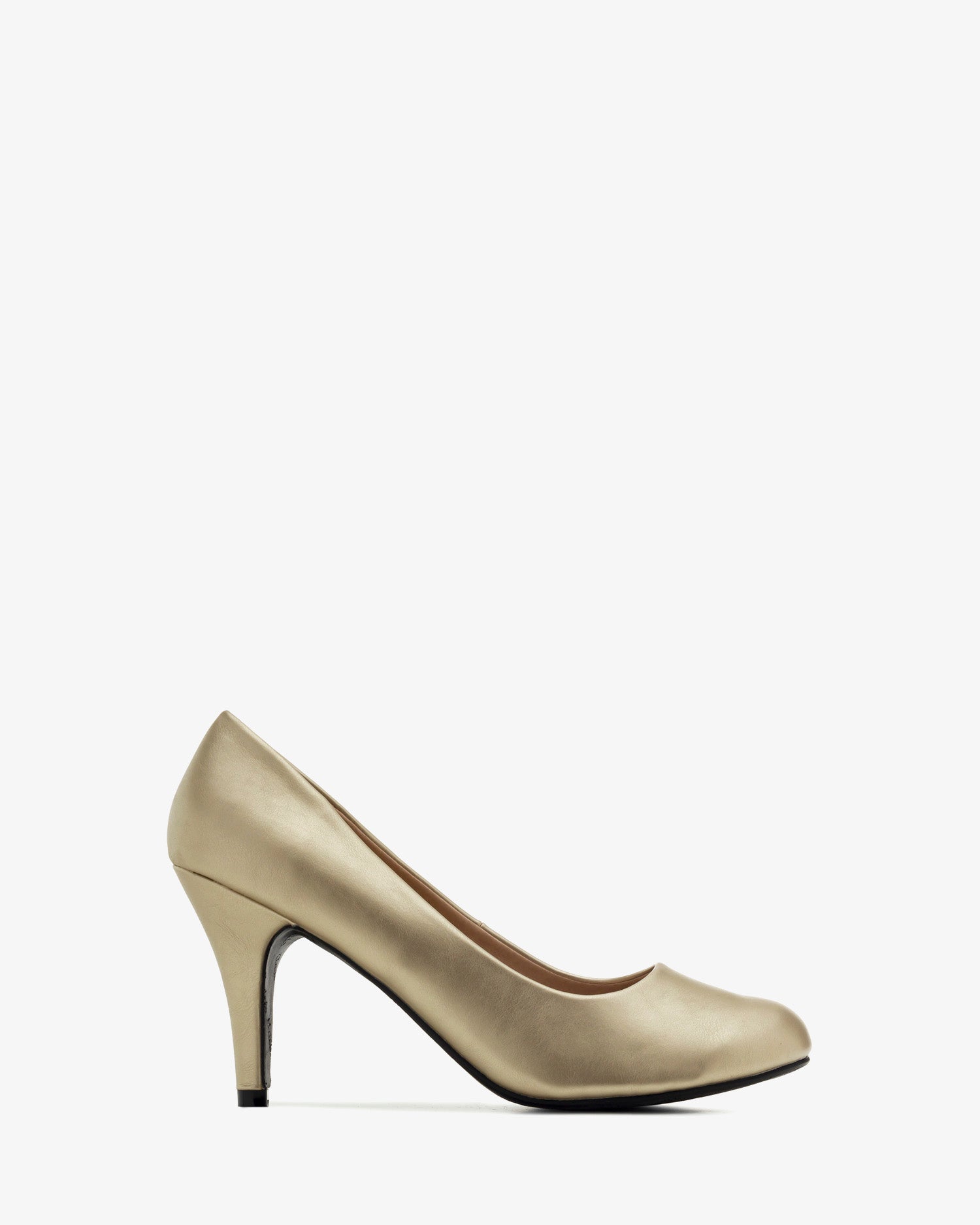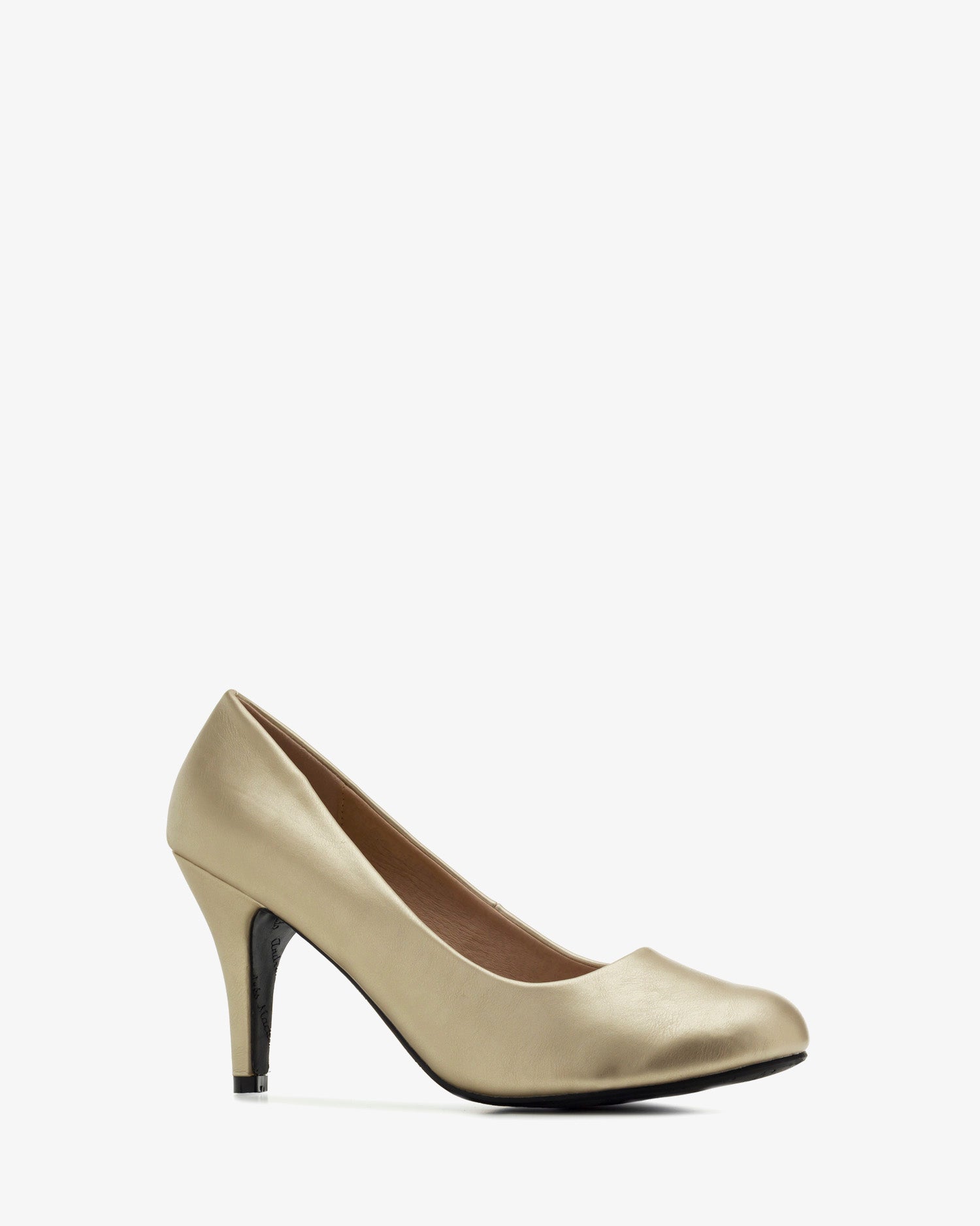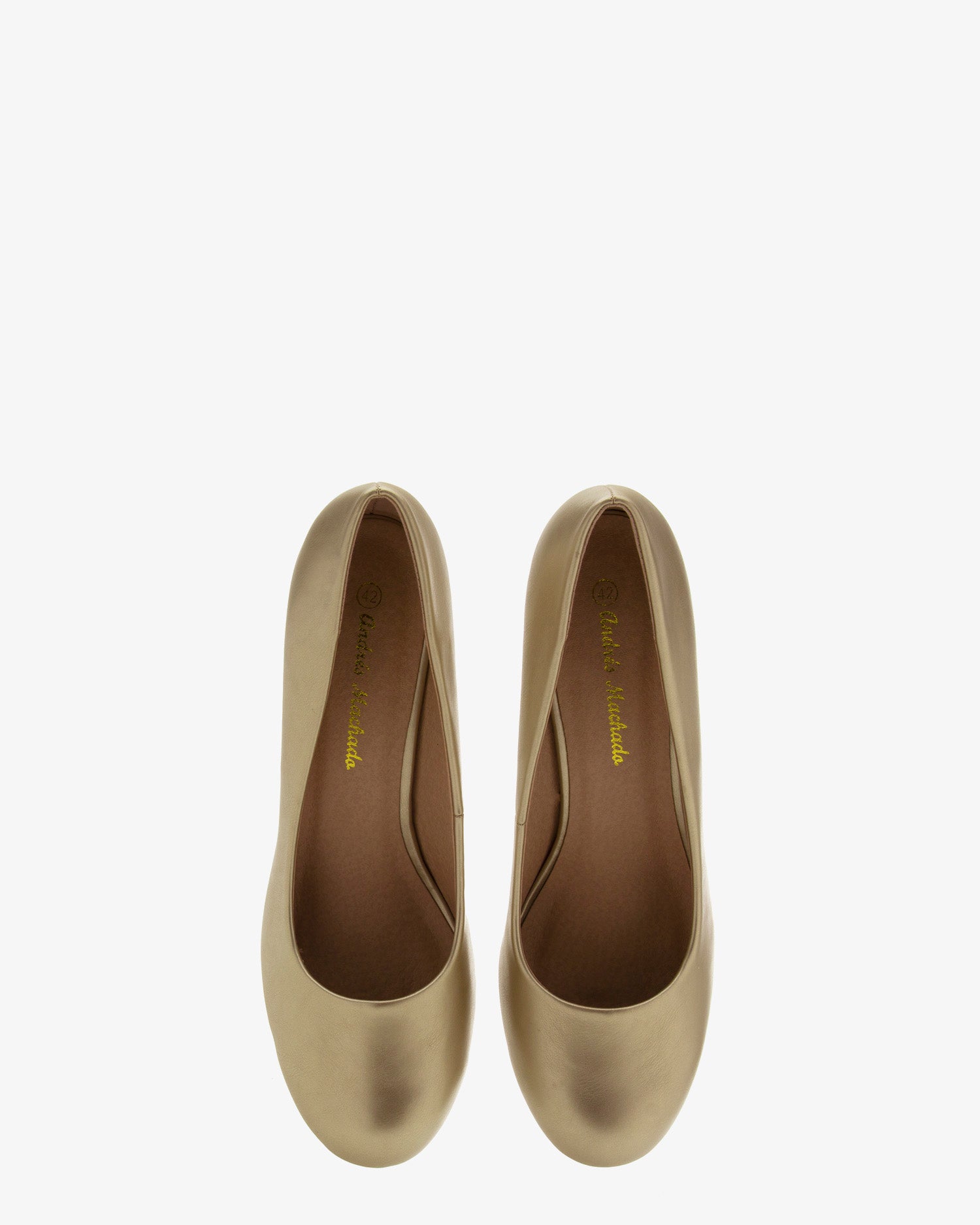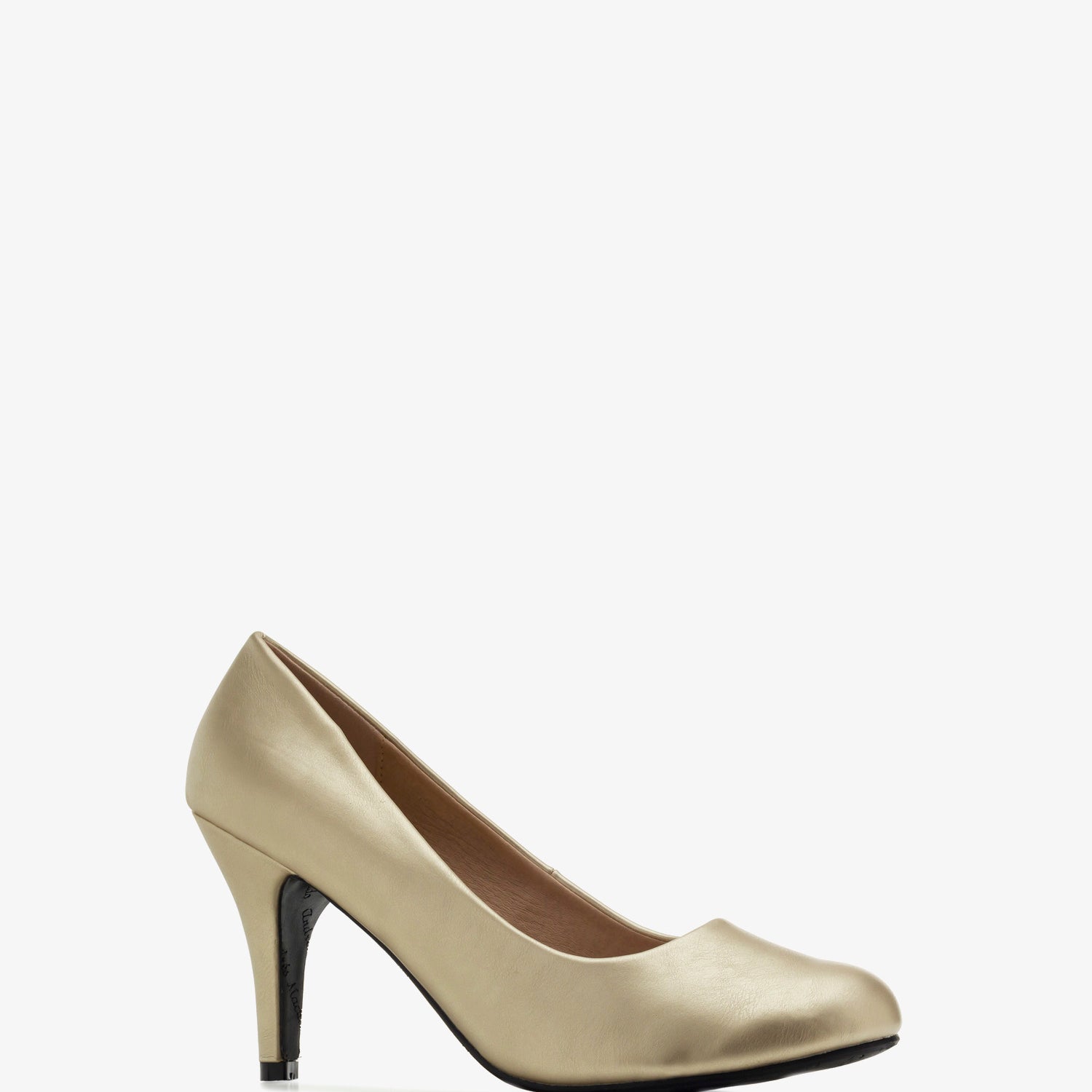 Klassische Lounge in sanftem Gold. Klassischer Leisten und Absatz. Abgerundete Spitze und schmaler Absatz, für alle Größen in der gleichen Farbe gefüttert. Kleine Größen von 32 bis 35 mit 9 cm Absatz. Mittlere Größen von 36 bis 41 mit 9,5 cm Absatz. Übergrößen von 42 bis 46 mit 10 cm Absatz. Dieses Modell fällt klein aus, es wird empfohlen, eine Nummer größer als üblich zu nehmen.