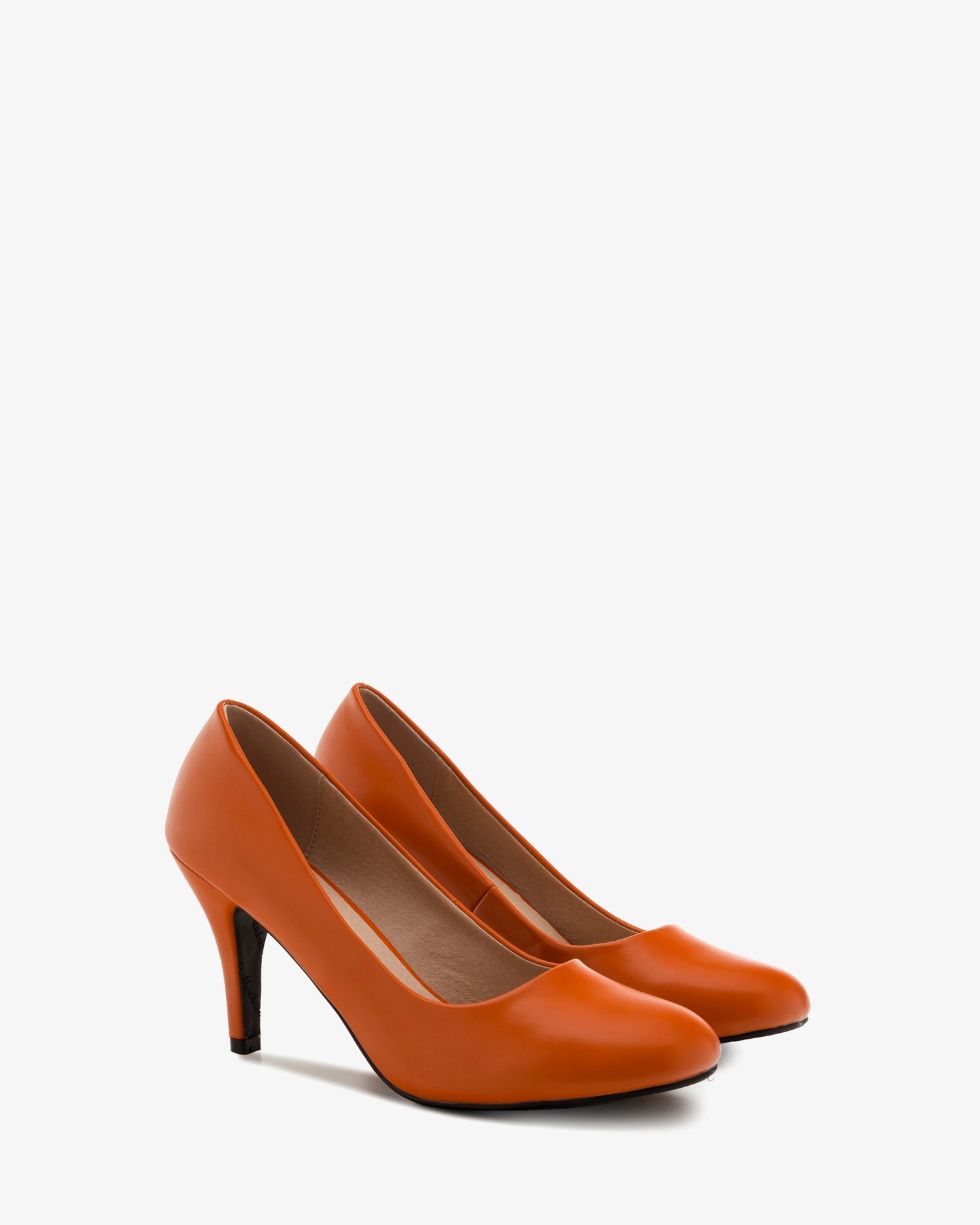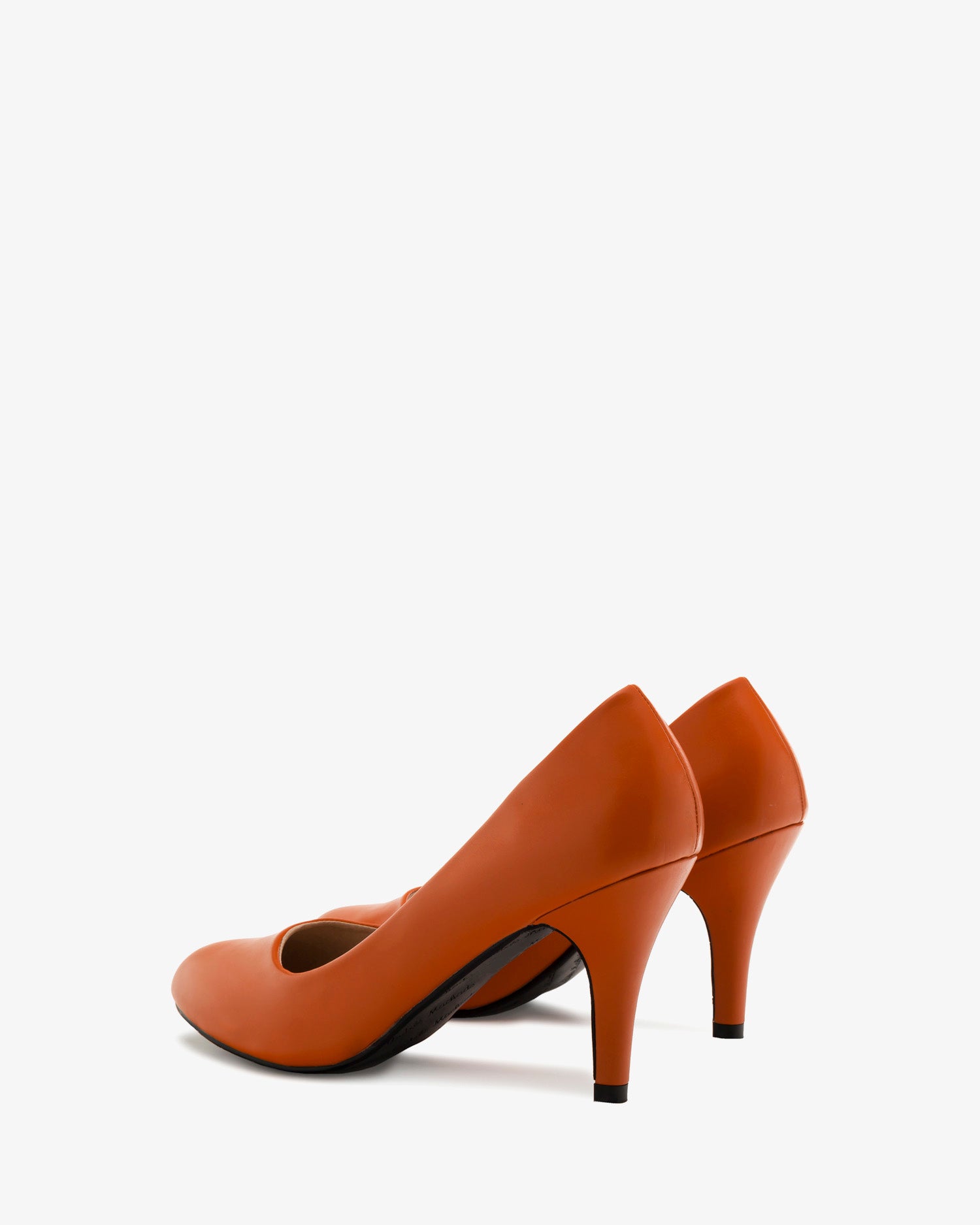 Klassisches Wohnzimmer in sanftem Terrakotta. Klassischer Leisten und Absatz. Abgerundete Spitze und schmaler Absatz, für alle Größen in der gleichen Farbe gefüttert. Kleine Größen von 32 bis 35 mit 9 cm Absatz. Mittlere Größen von 36 bis 41 mit 9,5 cm Absatz. Übergrößen von 42 bis 46 mit 10 cm Absatz. Dieses Modell fällt klein aus, es wird empfohlen, eine Nummer größer als üblich zu nehmen.