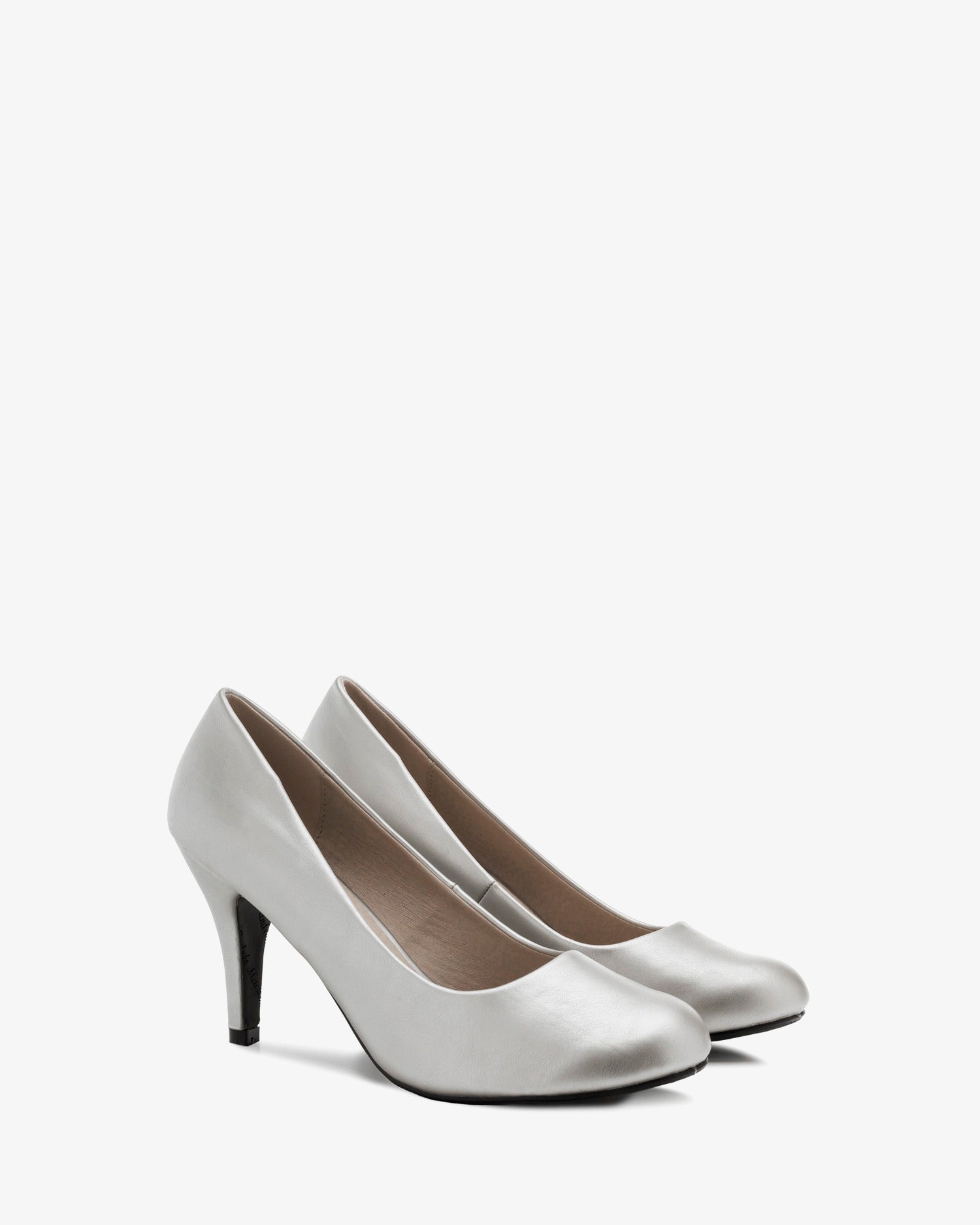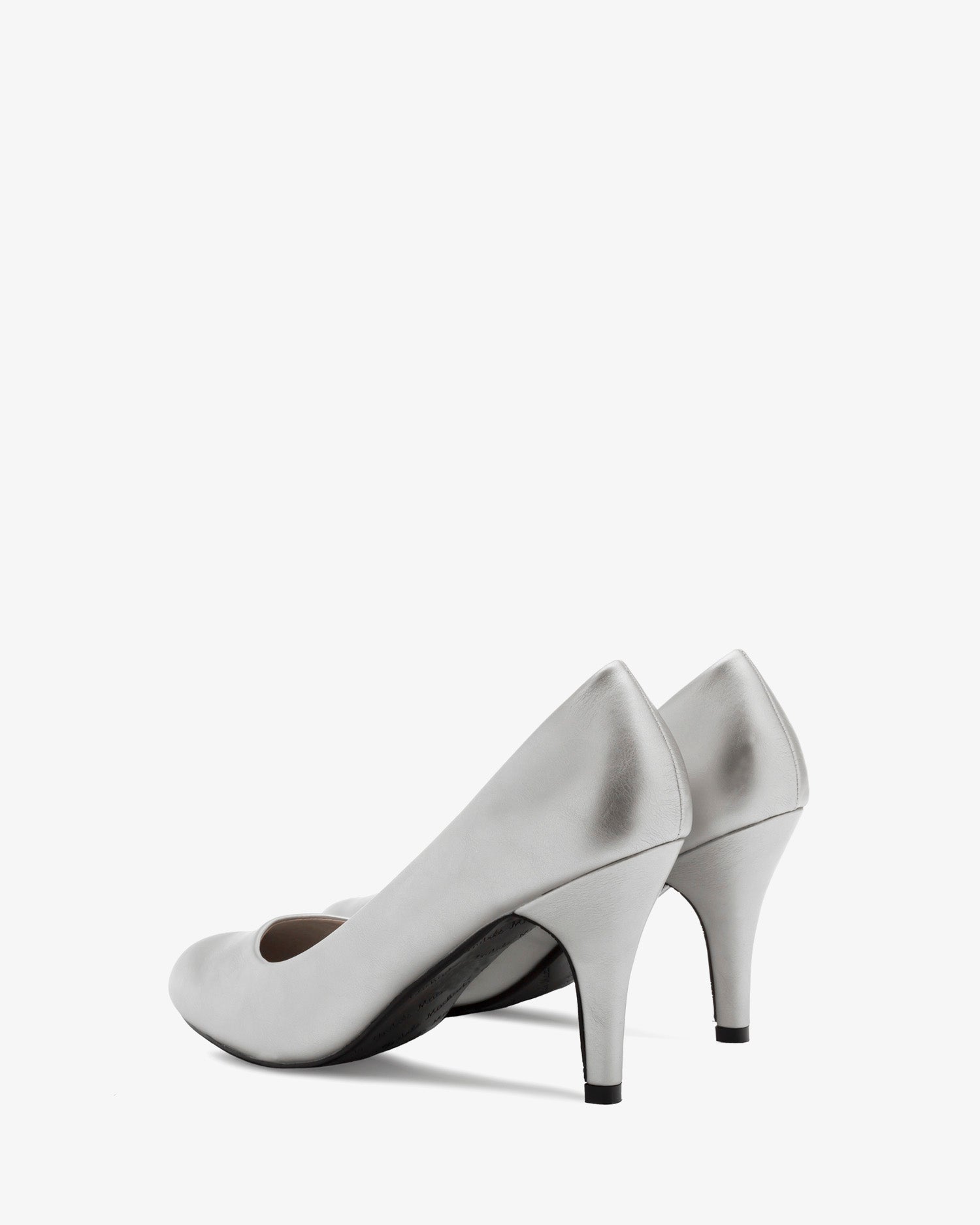 Klassische Lounge in sanftem Silber. Klassischer Leisten und Absatz. Abgerundete Spitze und schmaler Absatz, für alle Größen in der gleichen Farbe gefüttert. Kleine Größen von 32 bis 35 mit 9 cm Absatz. Mittlere Größen von 36 bis 41 mit 9,5 cm Absatz. Übergrößen von 42 bis 46 mit 10 cm Absatz. Dieses Modell fällt klein aus, es wird empfohlen, eine Nummer größer als üblich zu nehmen.