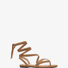 Kamelfarbene, flache Sandale in Wildlederoptik. Slingback-Design mit Zehenstegsandale und passendem Schnürverschluss um den Knöchel. Abgerundete und offene Spitze. Große Größen von 42 bis 45.