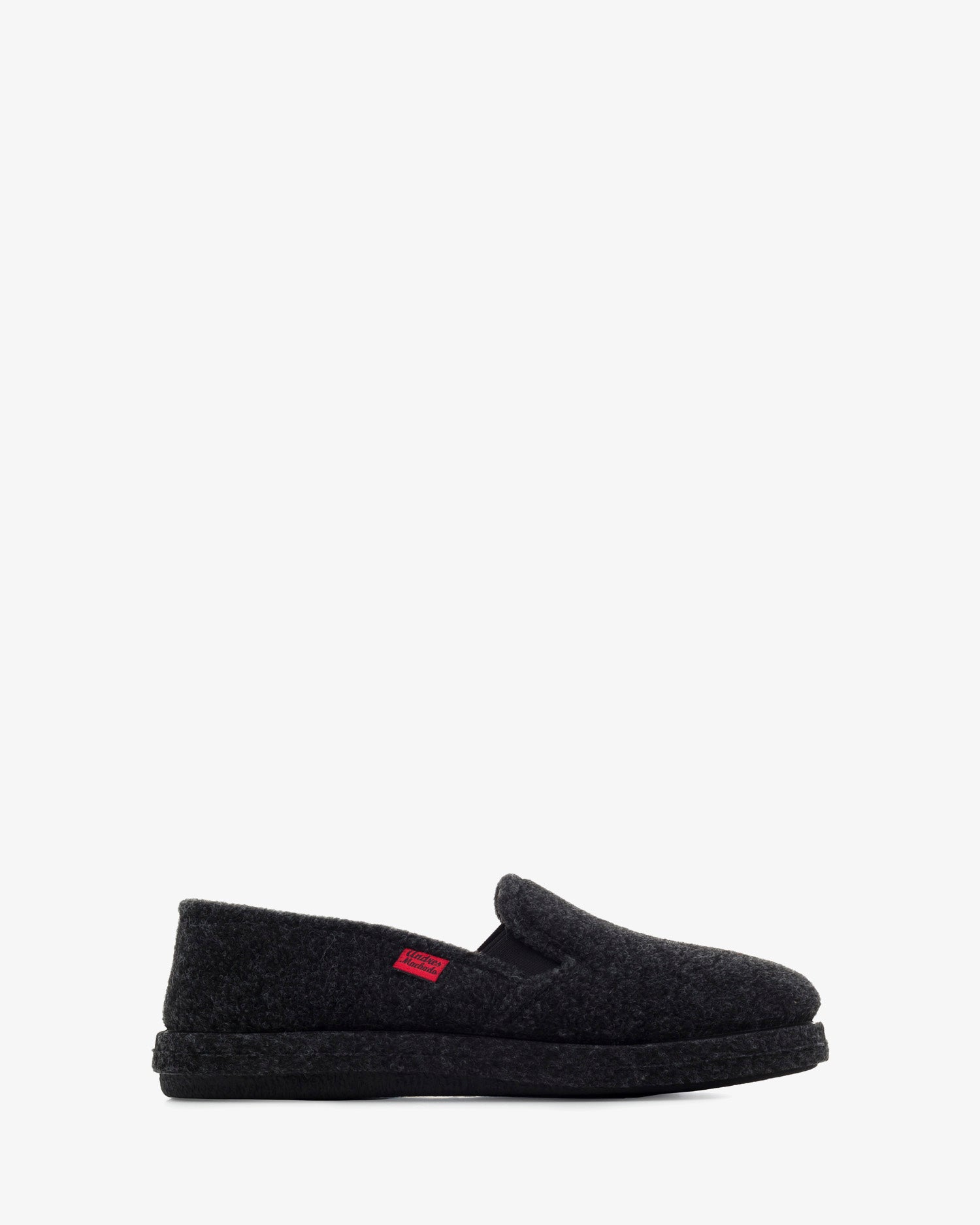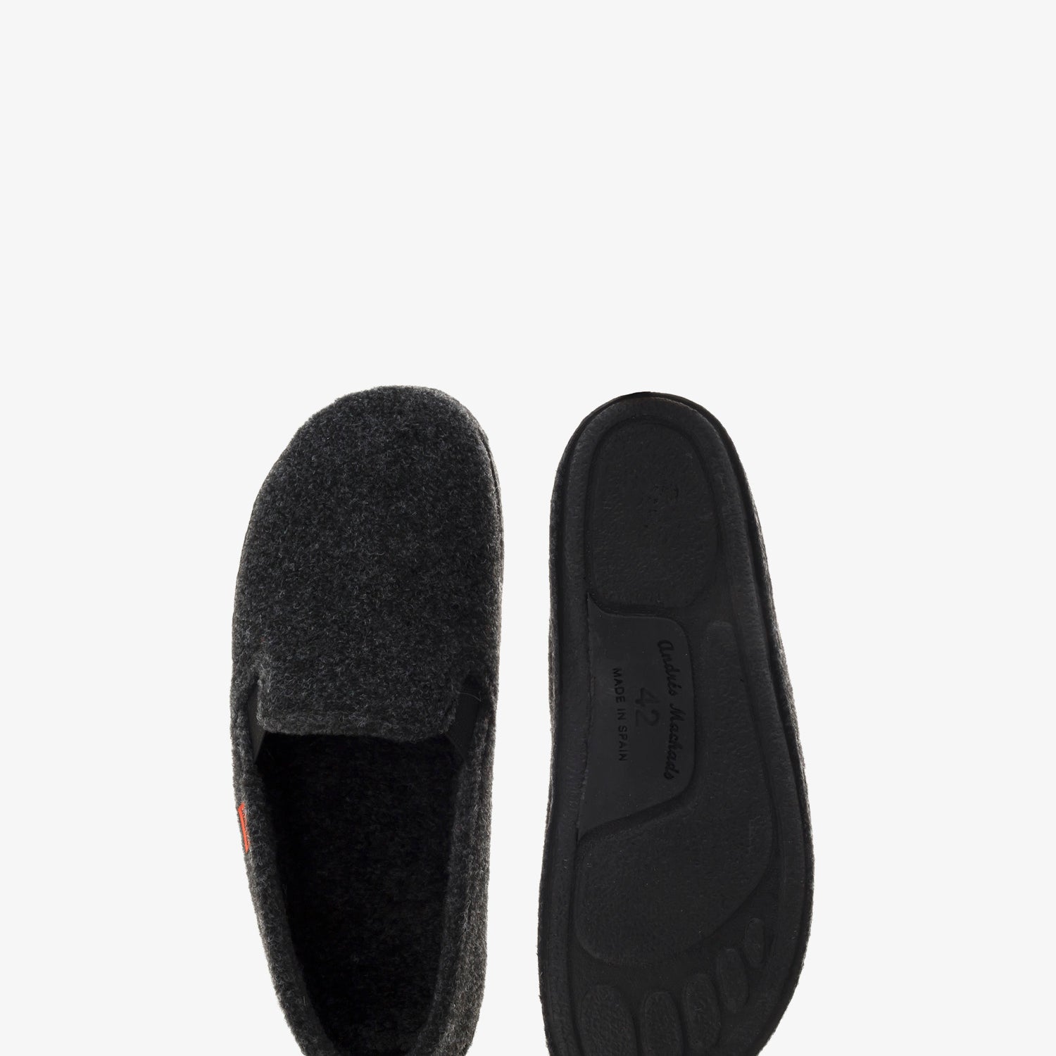 Anatomische Hausschuhe mit geschlossener Rückseite, aus Alpenfilz, gefüttert mit dem gleichen Material wie das Obermaterial. Sie sind mit dem Glove System ausgestattet und haben von innen die Form des Fußes. Das sind wirklich die besten Sneaker auf dem Markt. Schwarze vulkanisierte Sohle aus Naturkautschuk. Ein wahres Luxusbett für Ihre Füße. Größen von 32 bis 50.