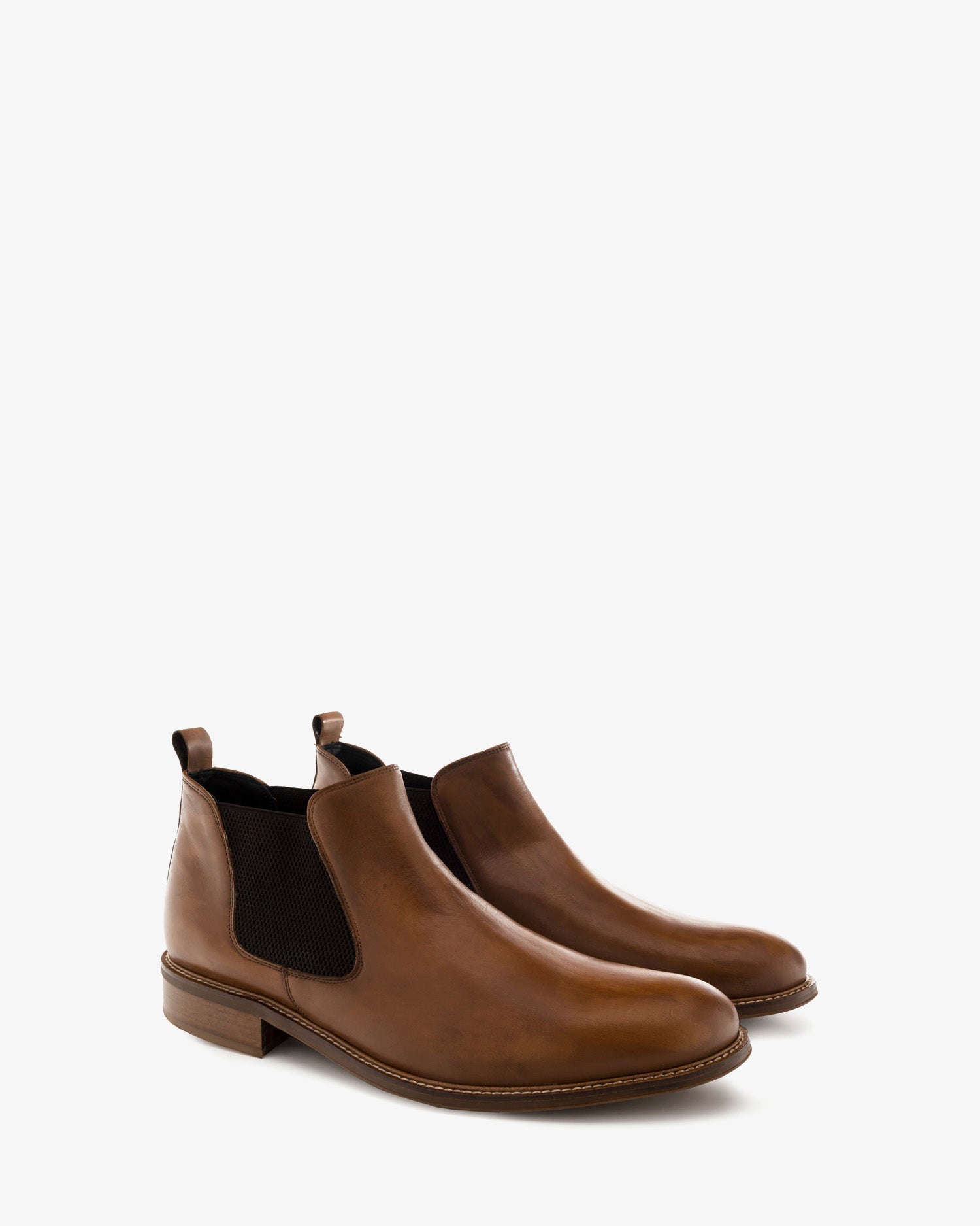 Stiefel im Chelsea-Stil aus Leder in Lederfarbe. Braune seitliche Gummizüge und lederfarbener hinterer Abzieher. Futter und Innensohle aus Leder. Herren-Übergrößen von 47 bis 50. Hergestellt in Spanien.