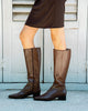 Hoher Stiefel aus Leder mit quadratischer Spitze. Design mit tonalen Ziernähten und seitlichem Reißverschluss. Absatz von 3,5 cm bei kleinen Größen (32 bis 35) und 4 cm bei großen Größen (42 bis 45). Hergestellt in Spanien.