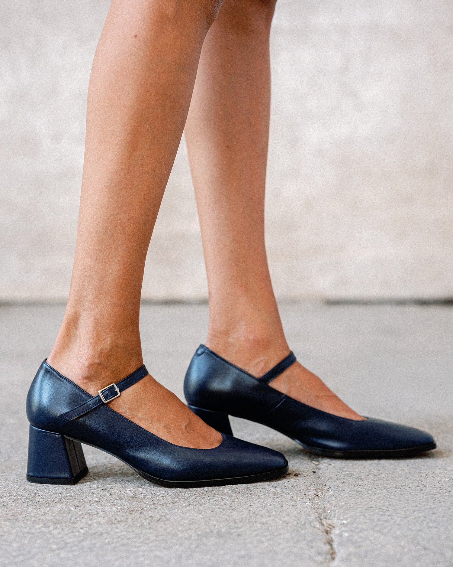 Mary-Jane-Pumps aus Leder mit Absatz marineblau