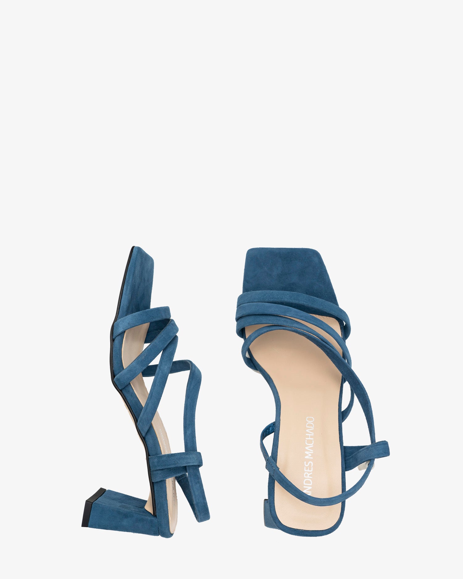 Blaue Wildledersandalen. Design aus dünnen diagonalen Ton-in-Ton-Streifen auf dem Spann. Diagonalstreifen an der Seite über dem Spann und um den Knöchel mit passendem Gummizug für besseren Halt. Rechteckiger, farblich passender Absatz. Verfügbare Größen von 32 bis 45. Verfügbare Größen von 32 bis 45. 5,5 cm Absatz für Größen 32 bis 38. 6 cm Absatz für Größen 39 bis 45. Hergestellt in Spanien.