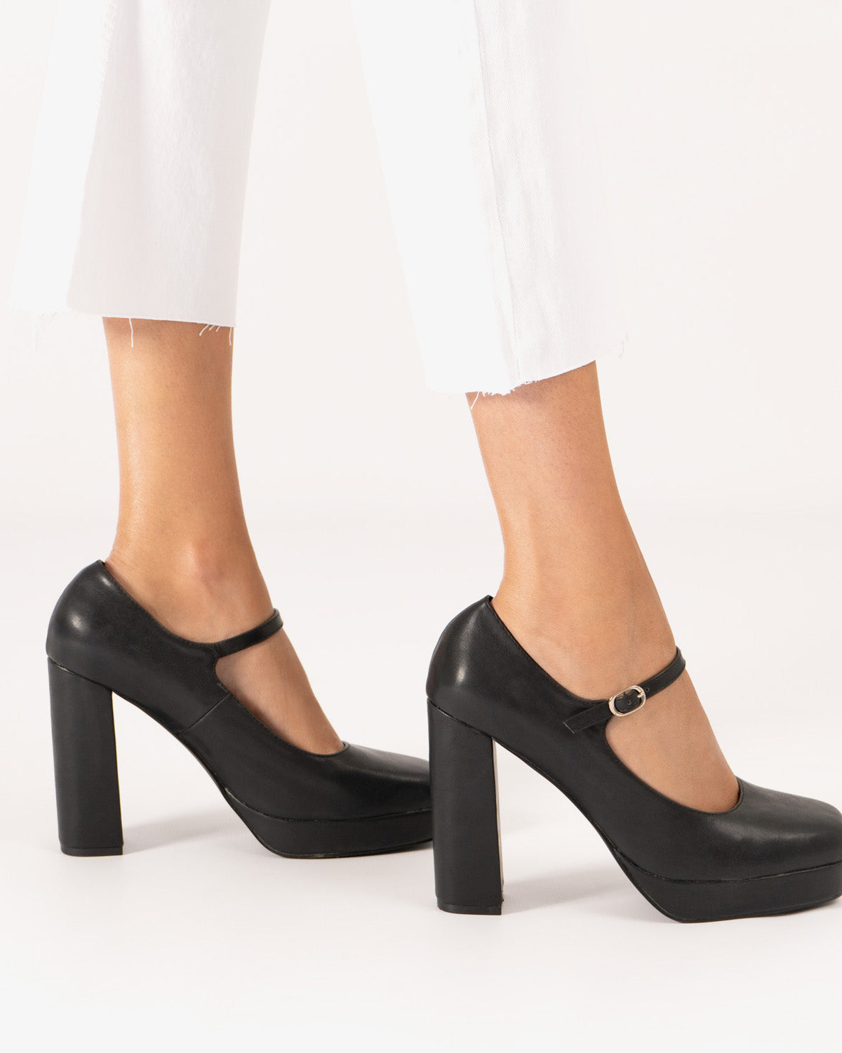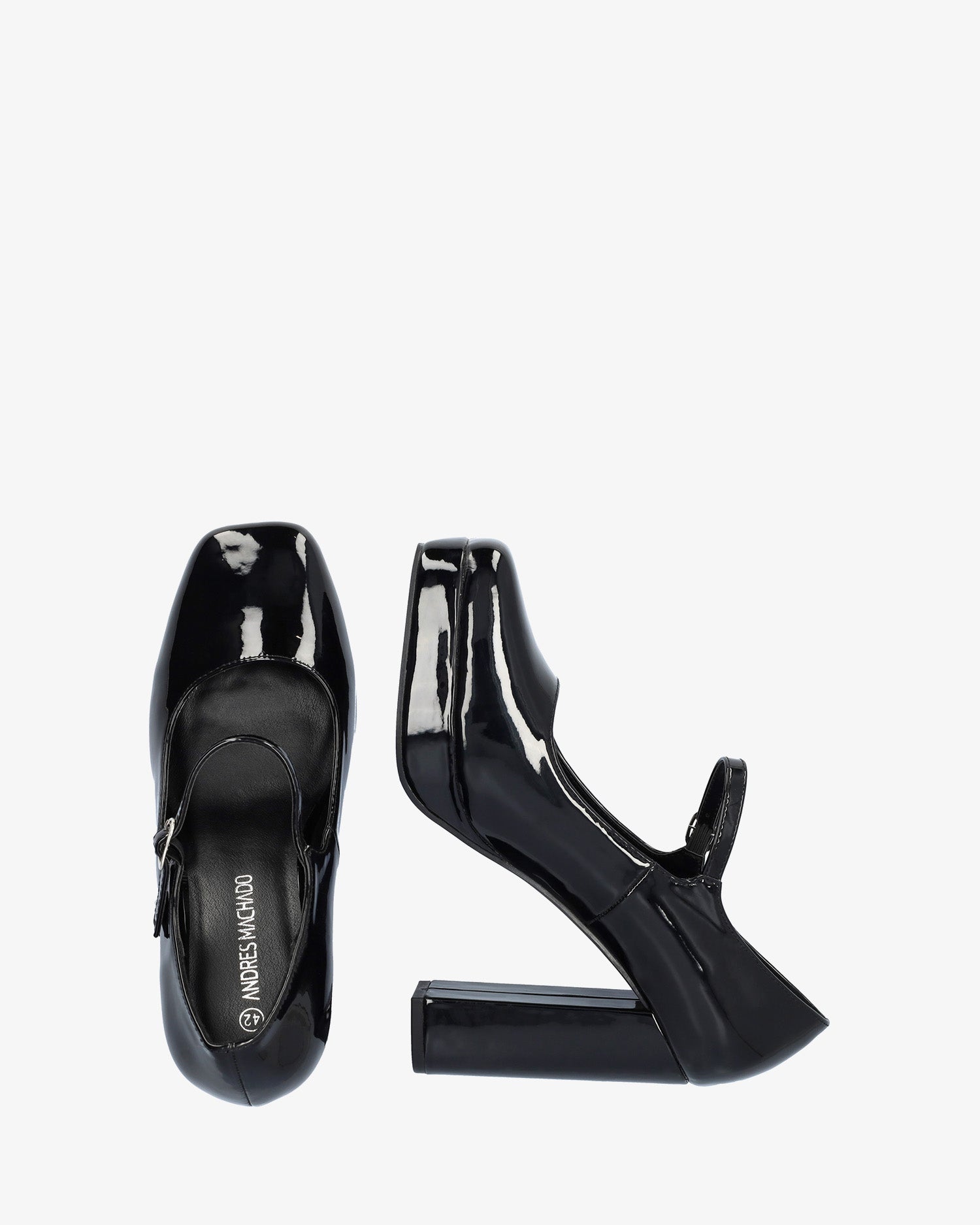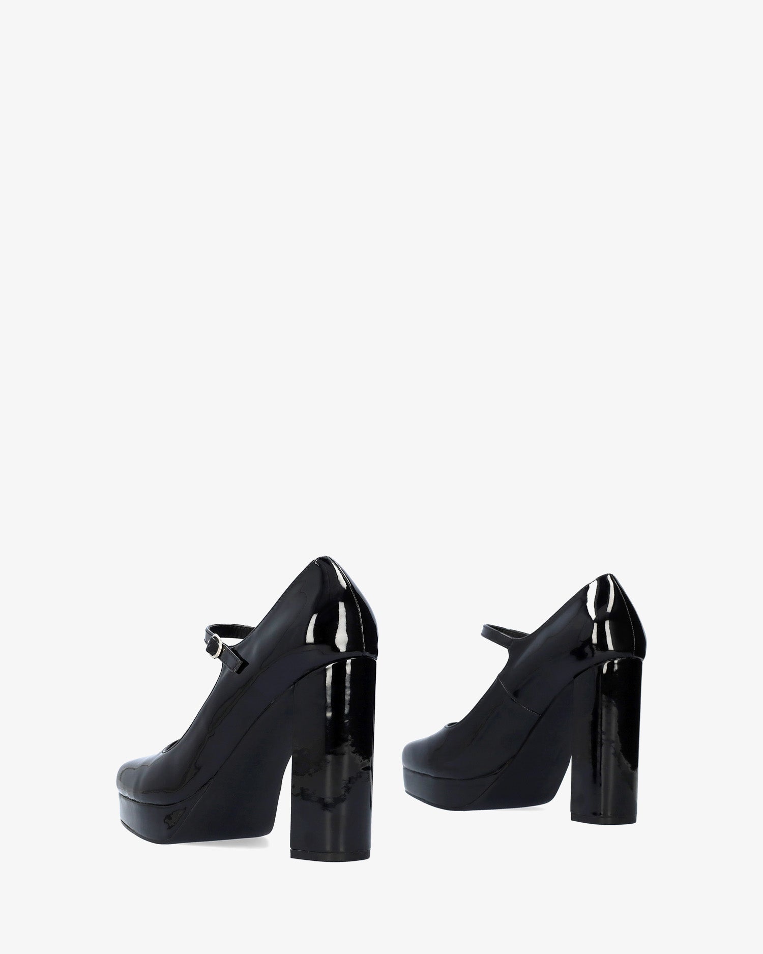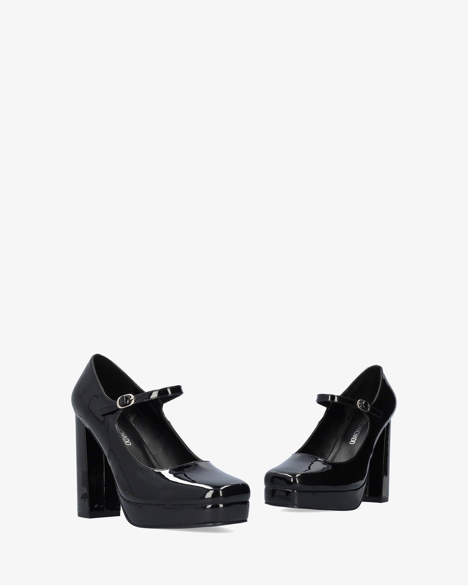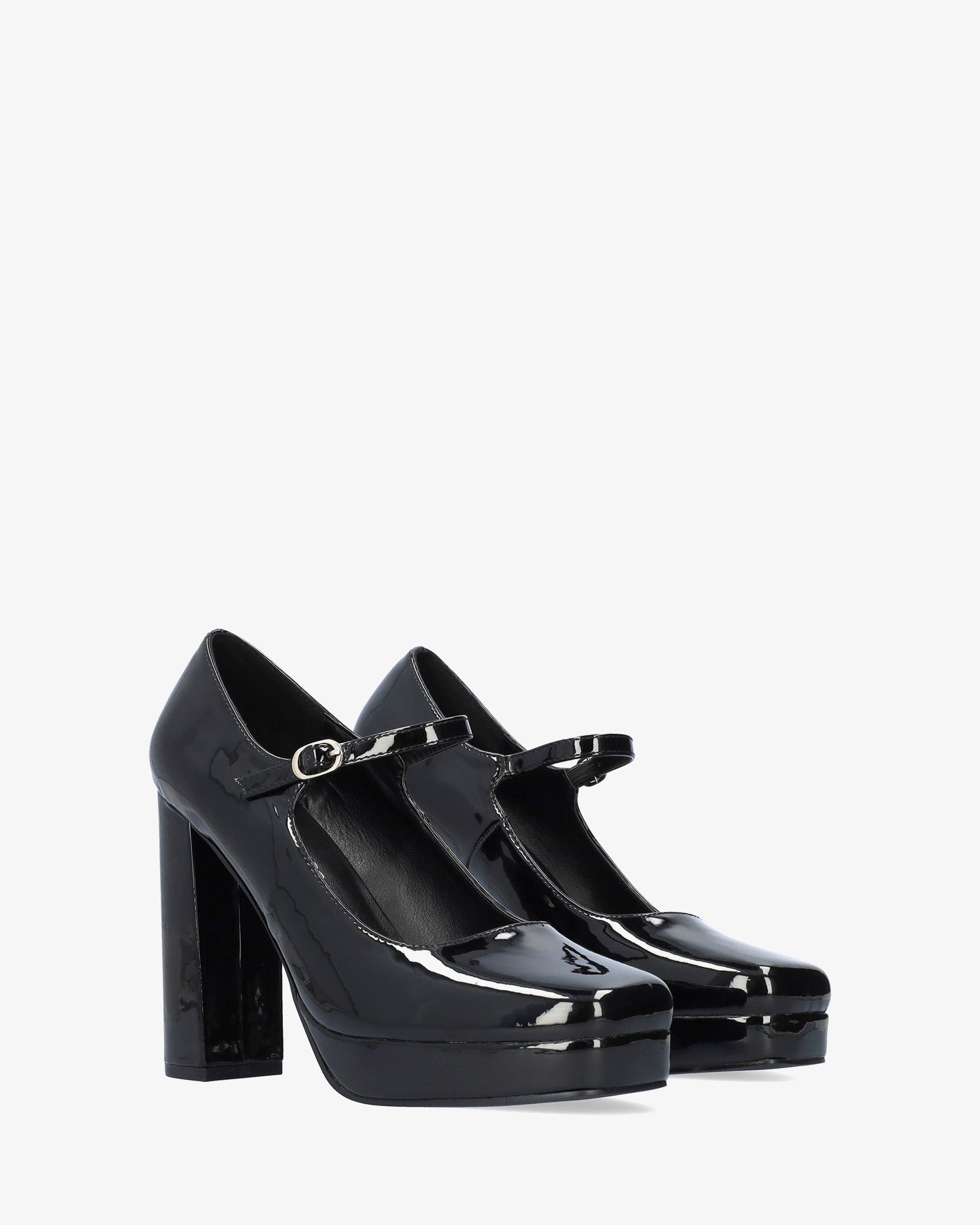 Schuh im mary jane stil mit absatz und plateau in lackleder farbe schwarz