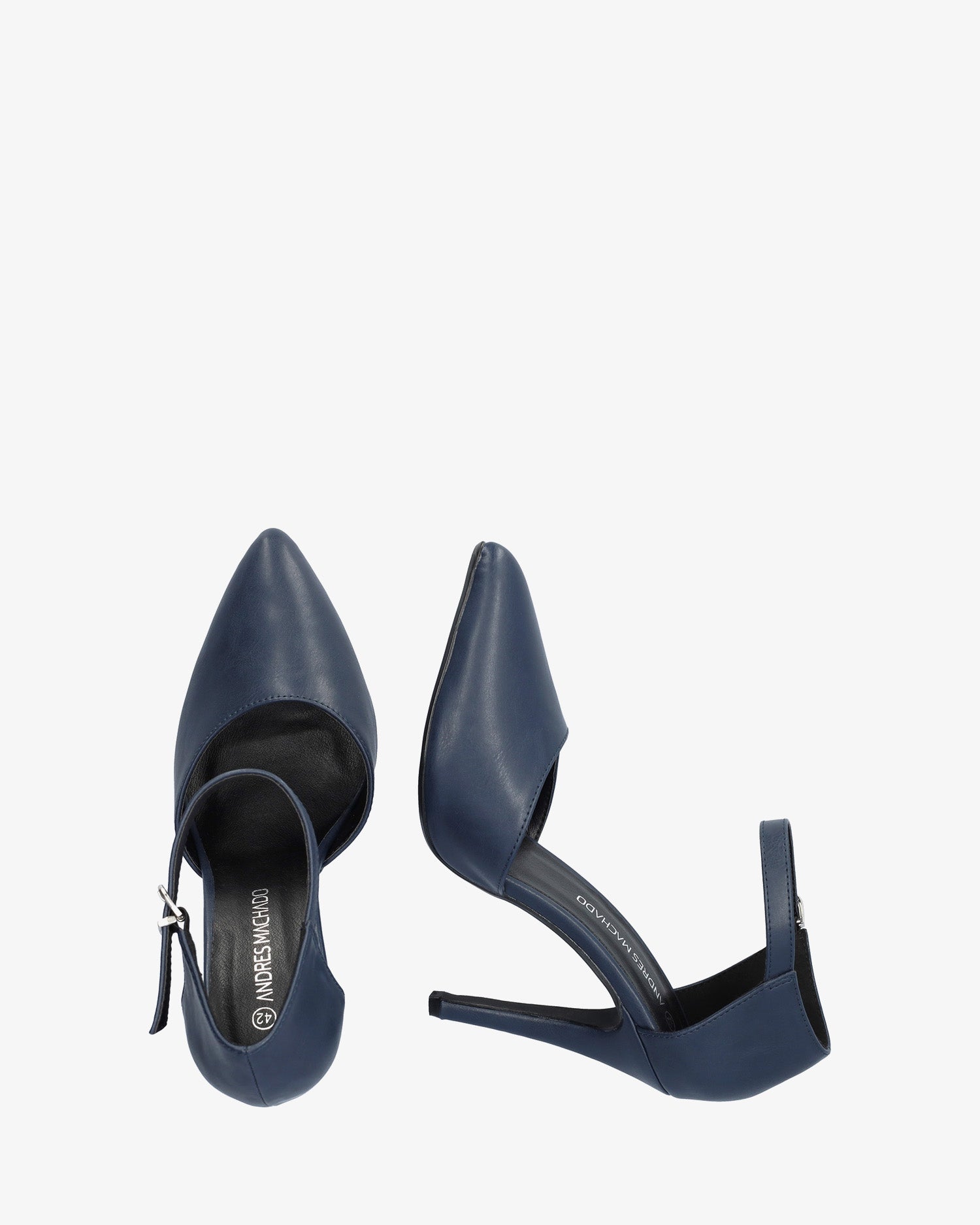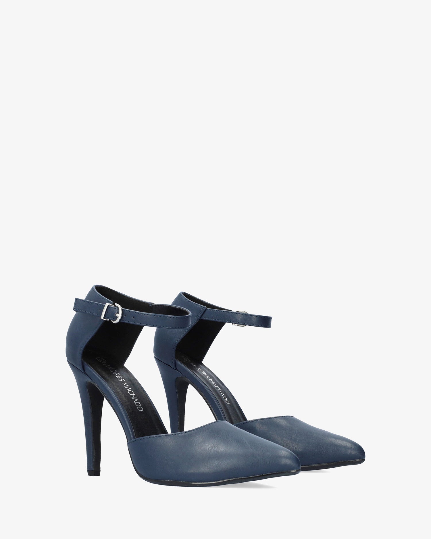 Weiche, marineblaue Lounge-Schuhe mit hohem, dünnem Absatz, im gleichen Ton gefüttert. Bedecktes Fersendesign mit Schnallenverschluss am Knöchelriemen. Feine Spitzenverarbeitung. 9,5 cm Absatz bei den kleinen Größen 32 bis 35 und 11 cm Absatz bei den großen Größen 43 bis 45.