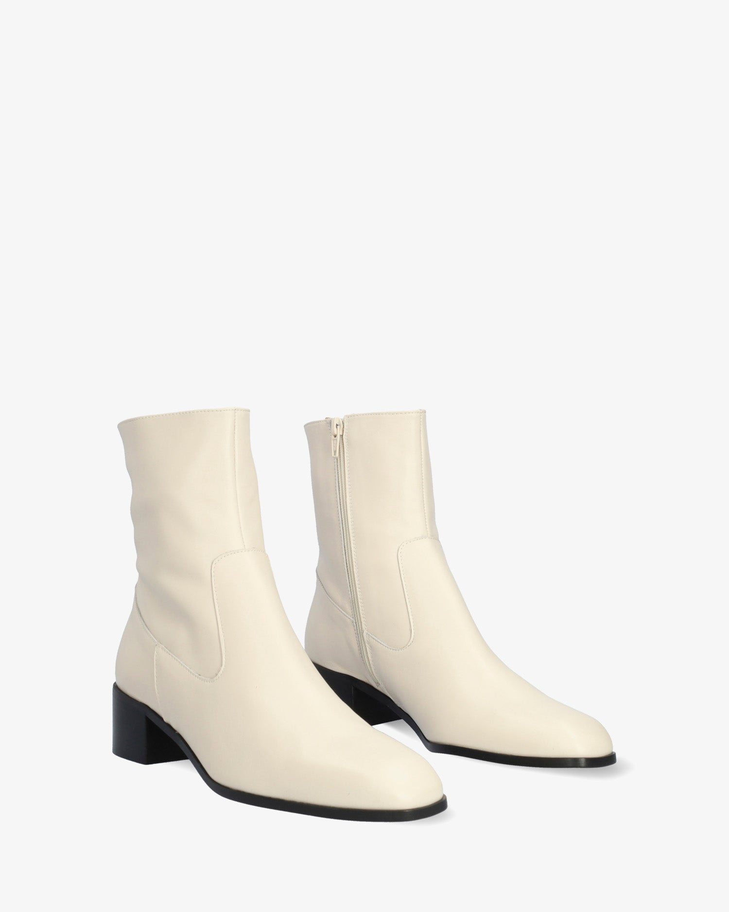 Stiefeletten aus perlweißem leder