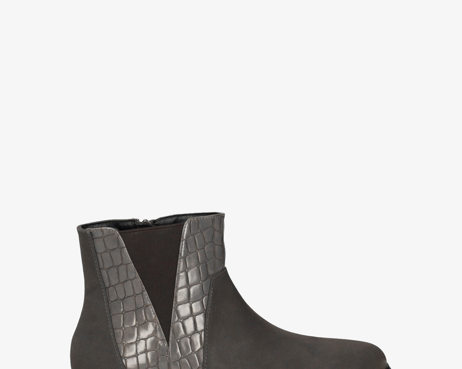 High-top booties in grey croc and faux suede