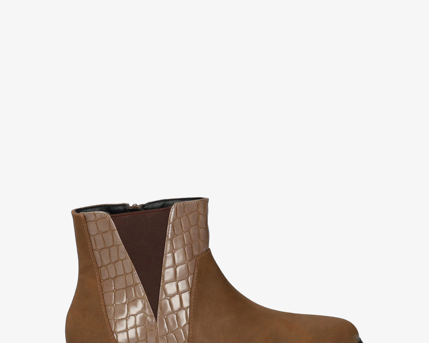 High-top booties in brown croc and faux suede