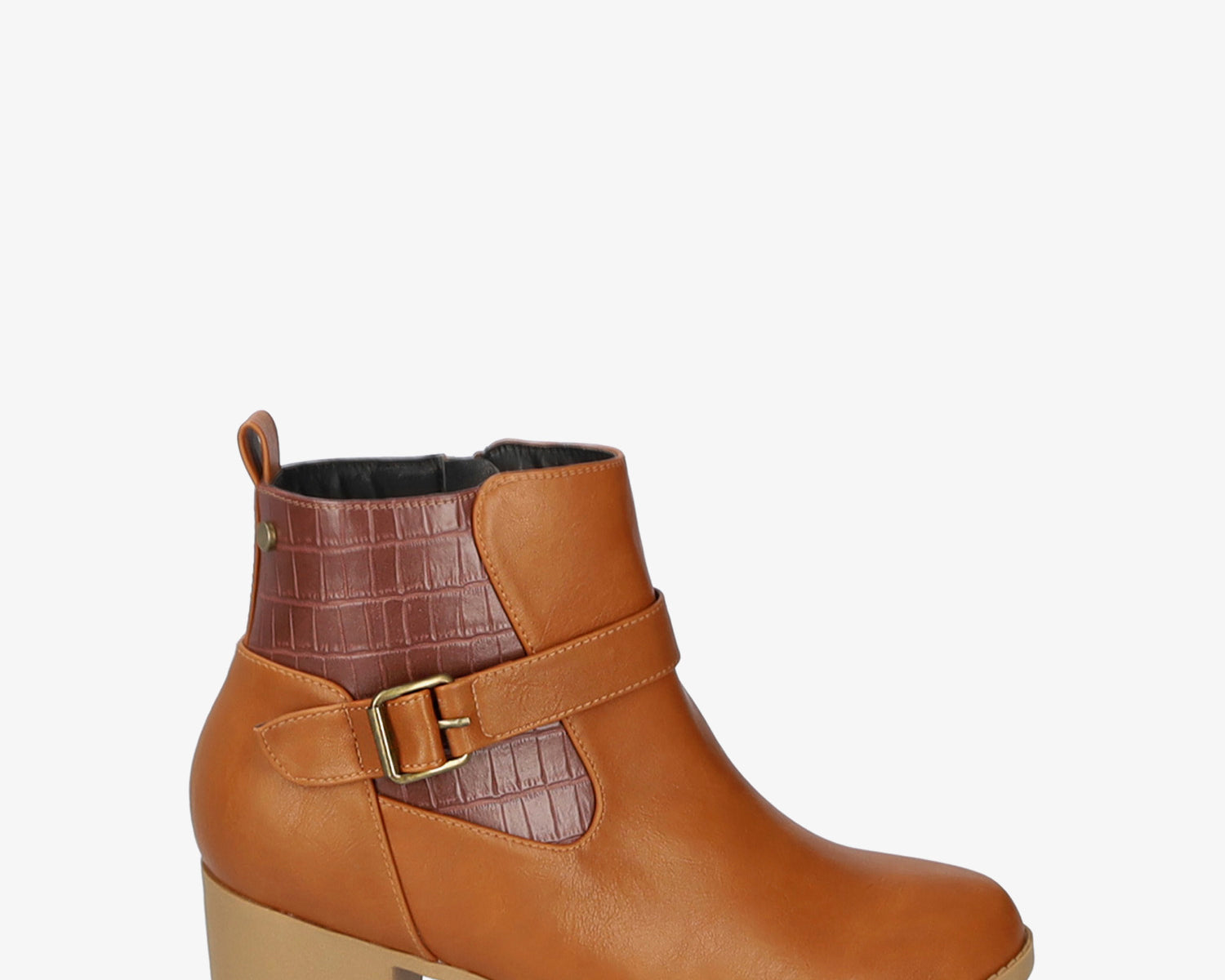 Camel faux soft leather heeled ankle boots
