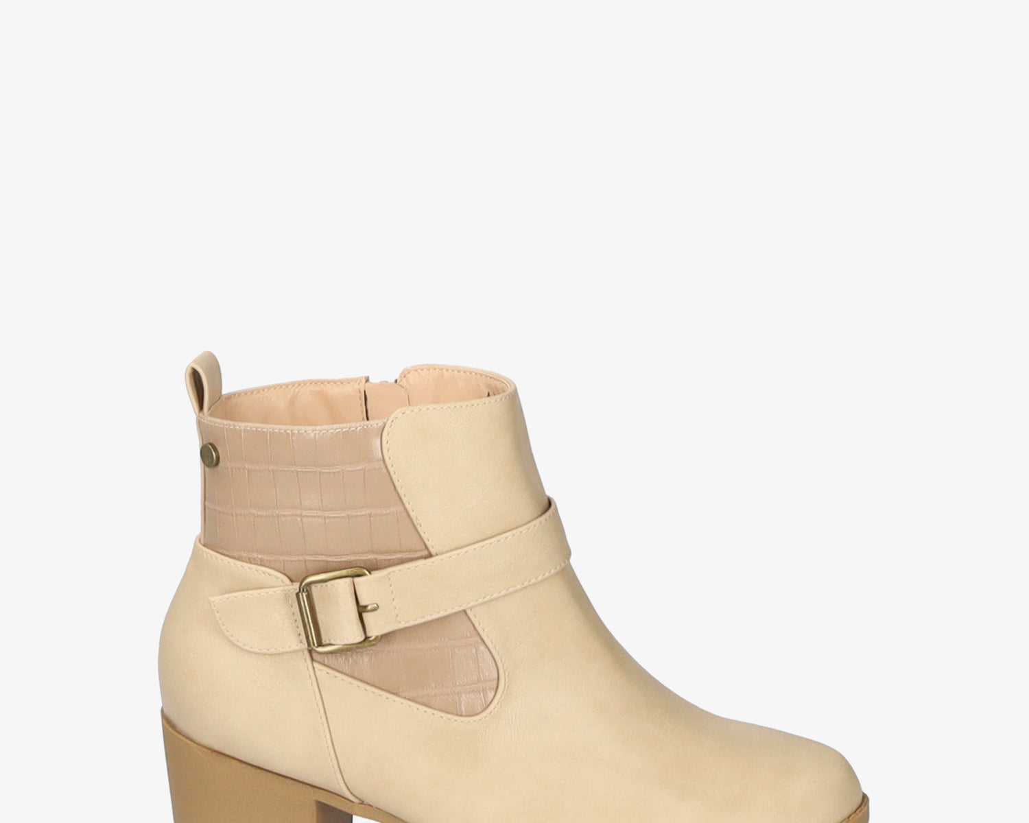 Mid-heel booties in ivory faux leather