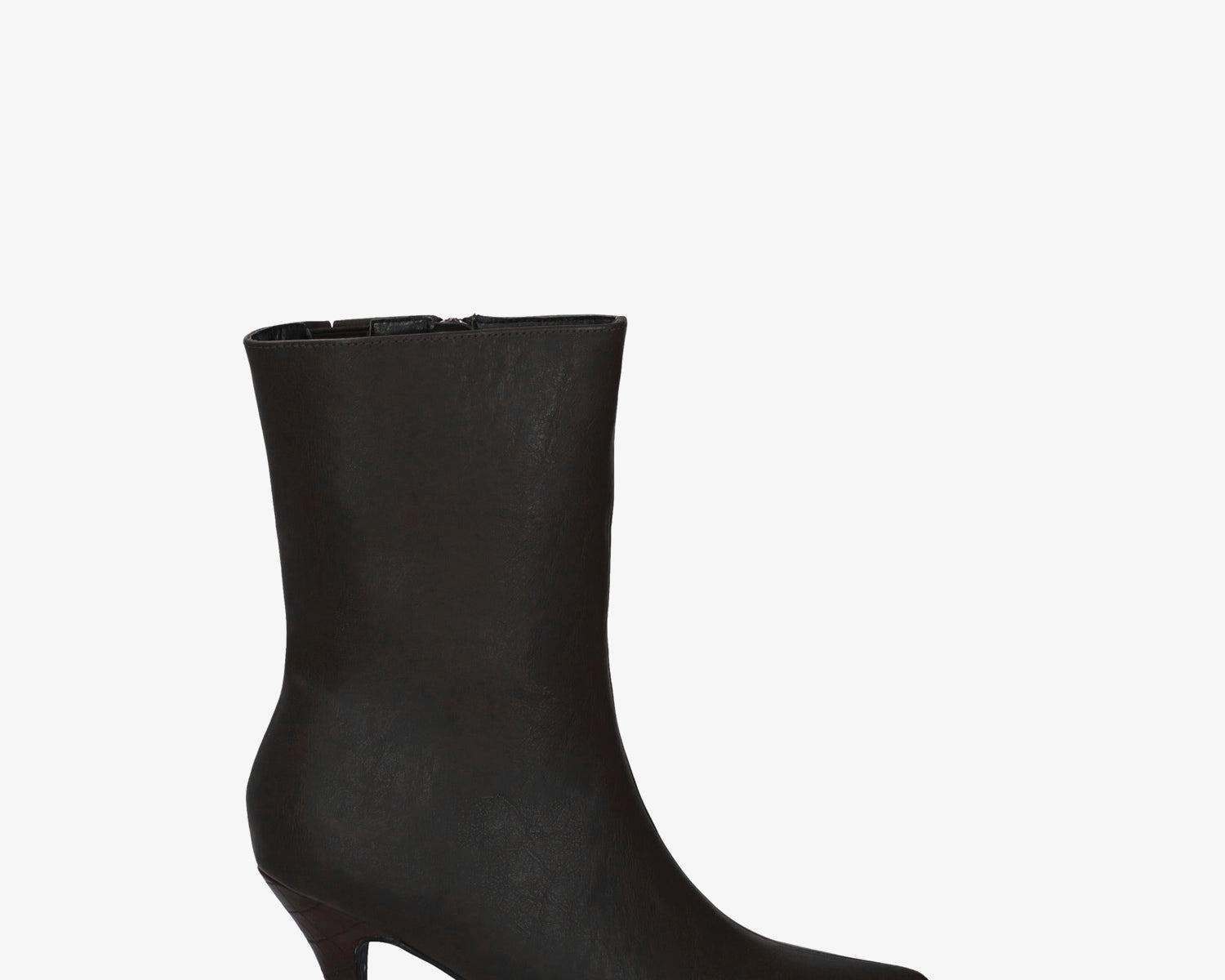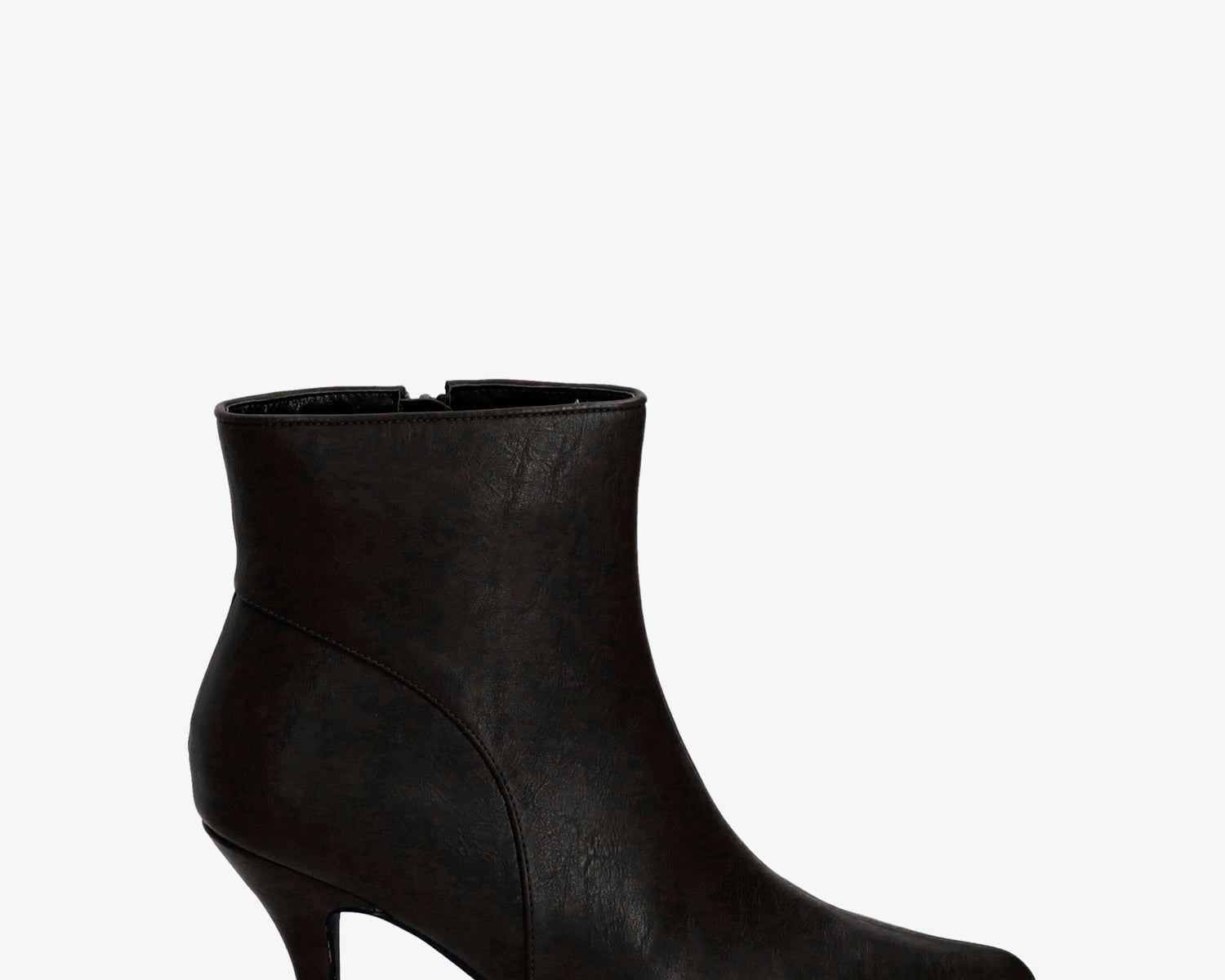 Mid-heel booties in brown faux leather