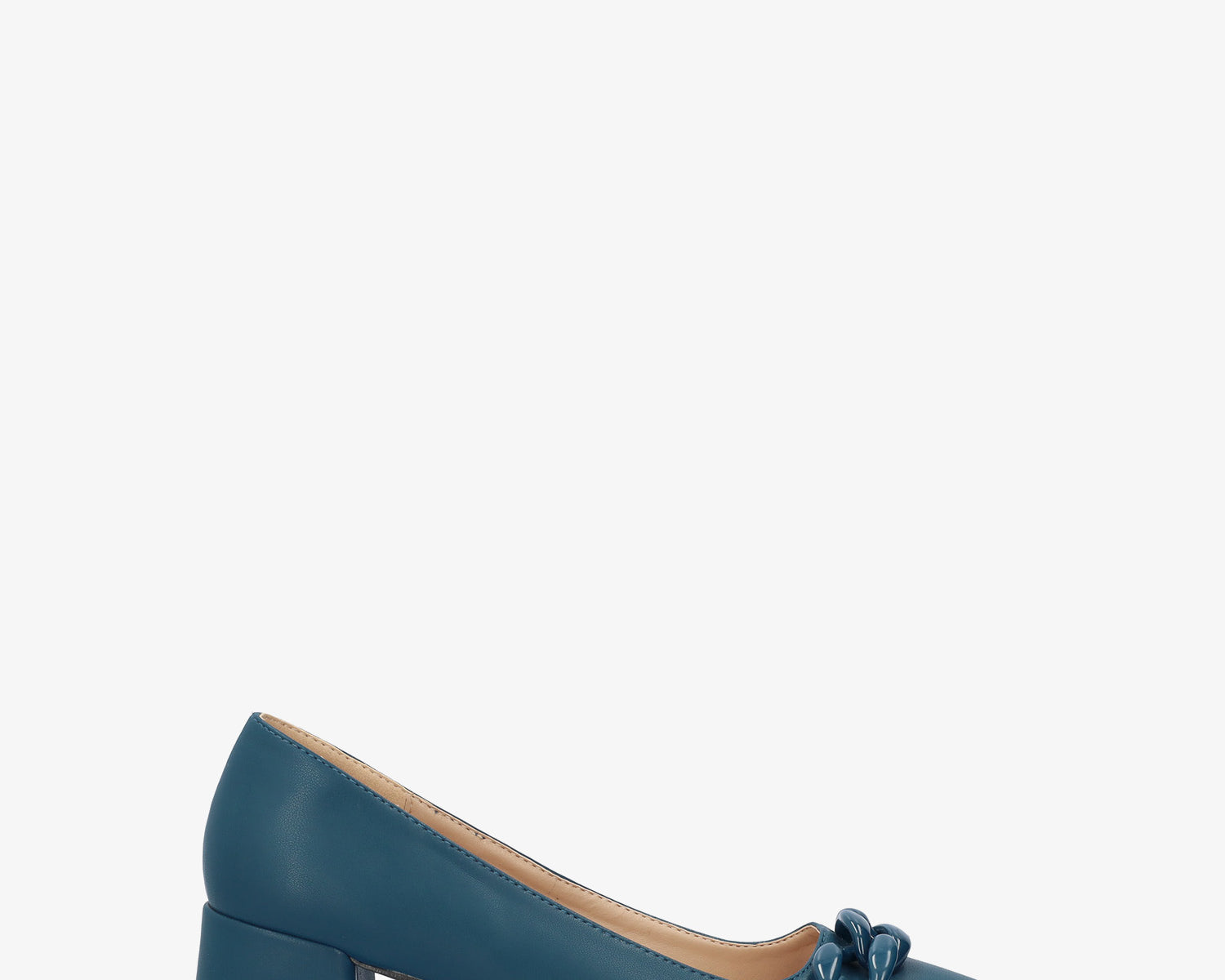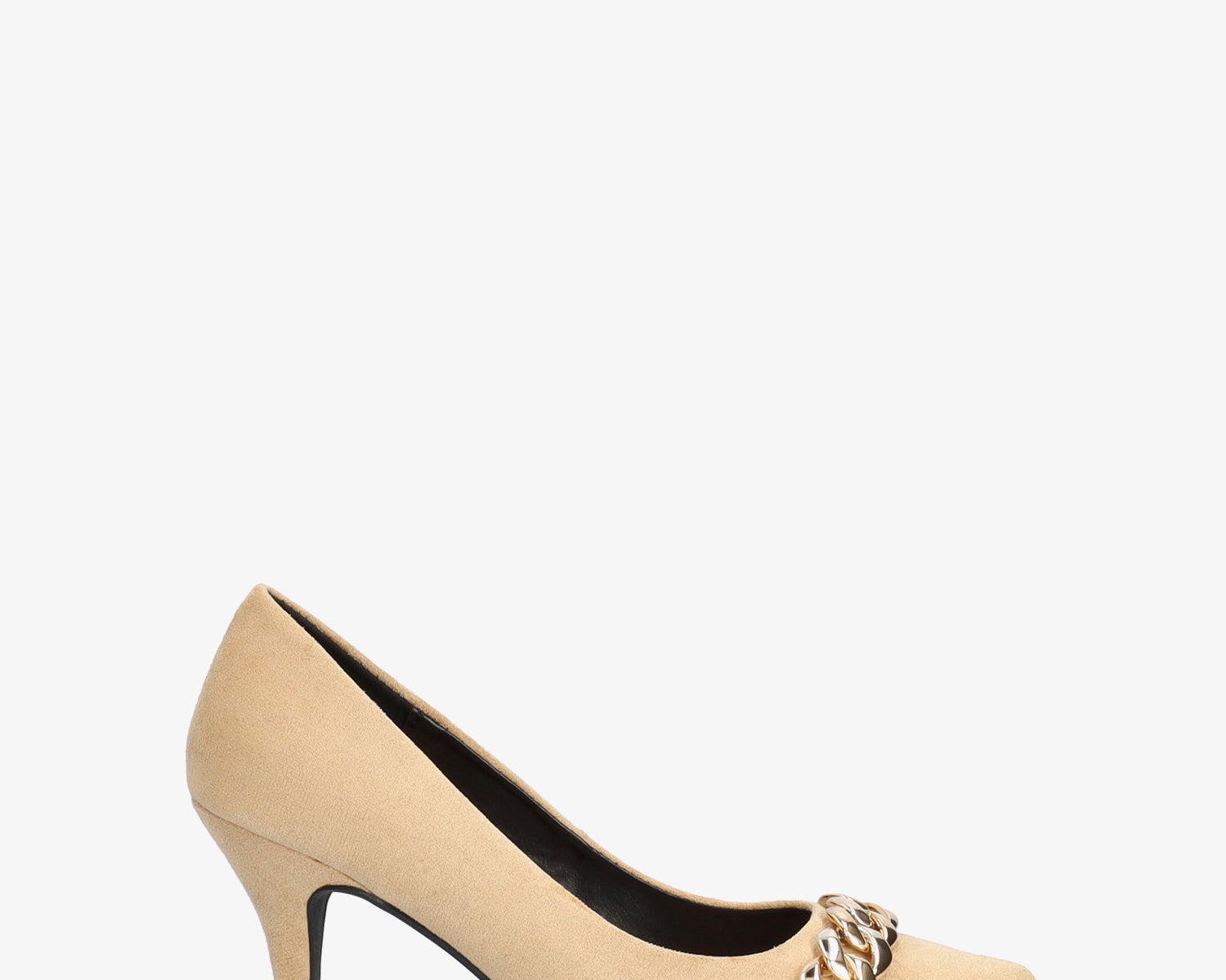 Heeled shoes in beige faux suede with chain link detail