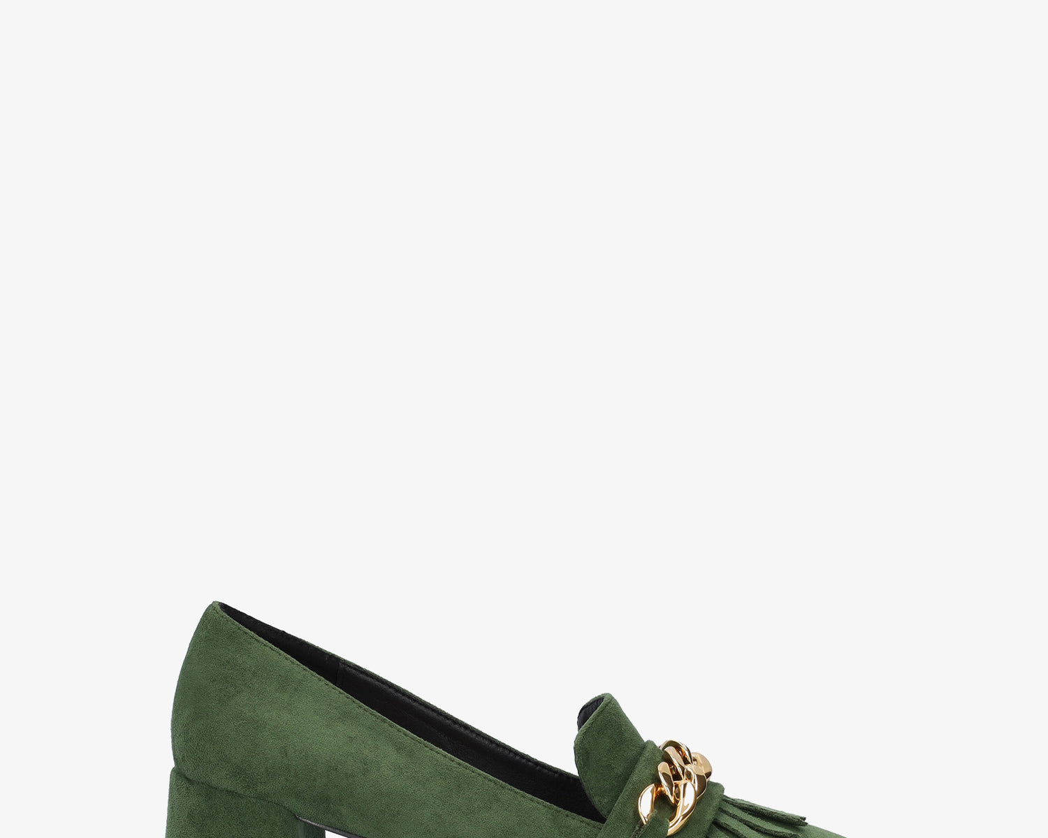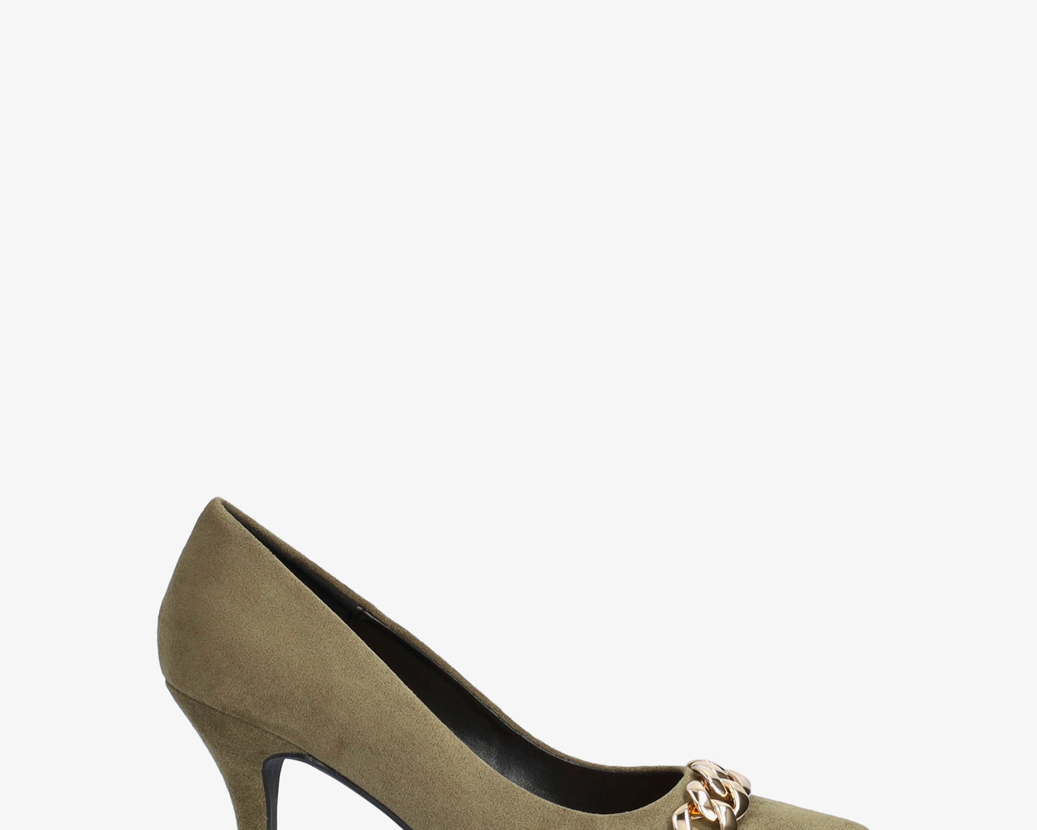 Heeled shoes in kaki faux suede with chain link detail