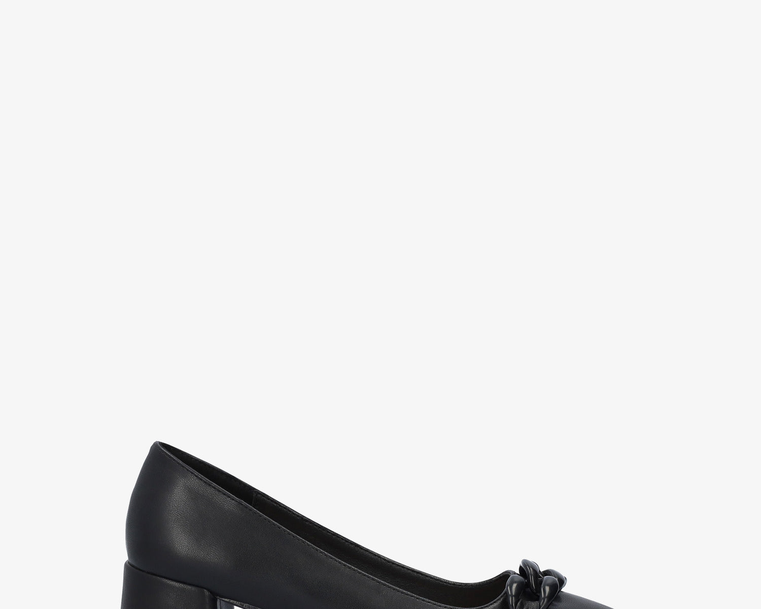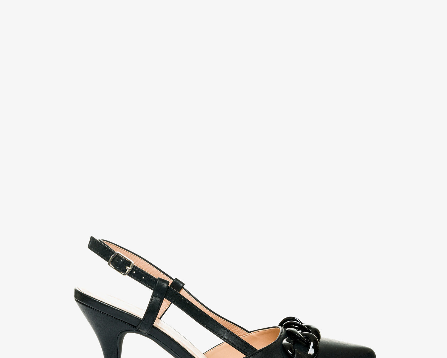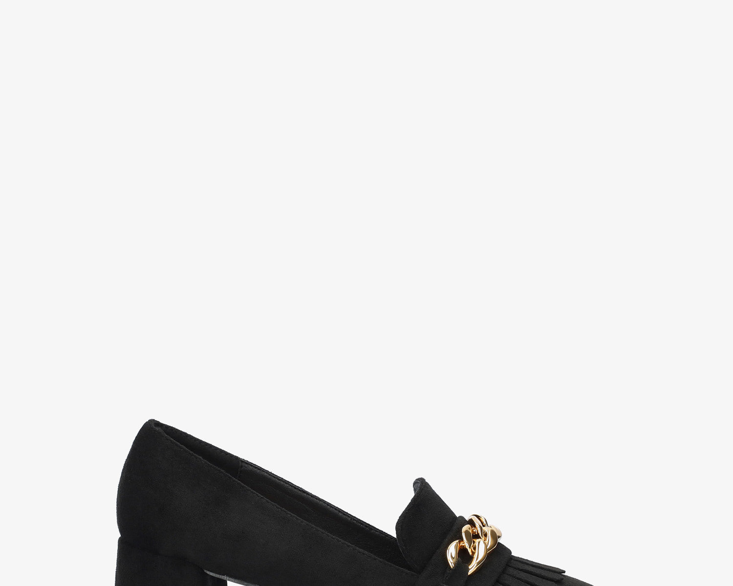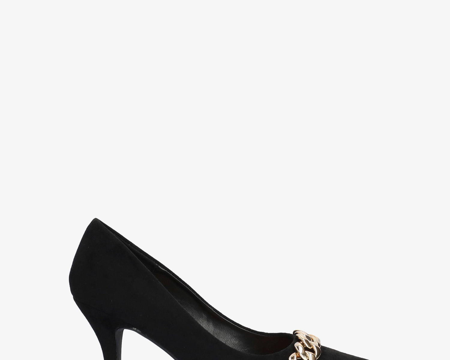 Heeled shoes in black faux suede with chain link detail