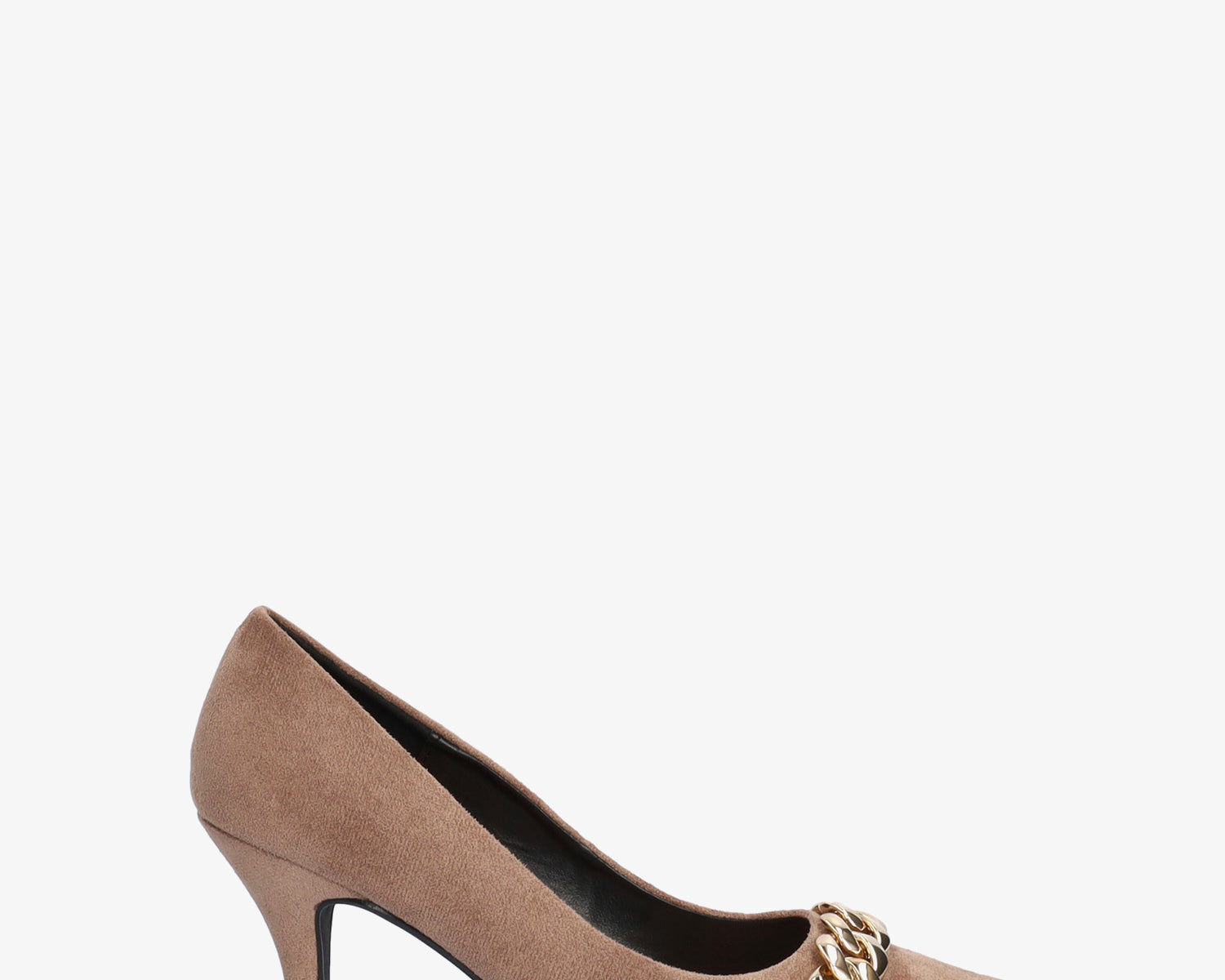 Heeled shoes in light brown faux suede with chain link detail