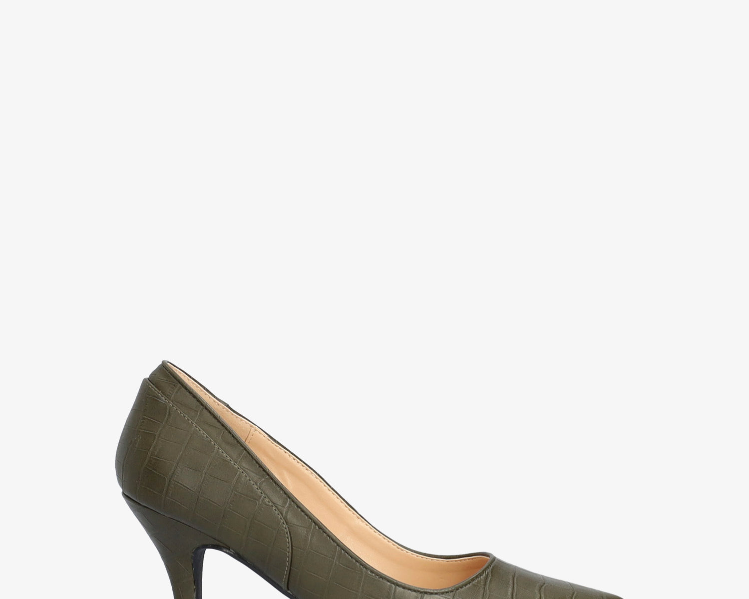 Heeled shoes in kaki colored faux croc