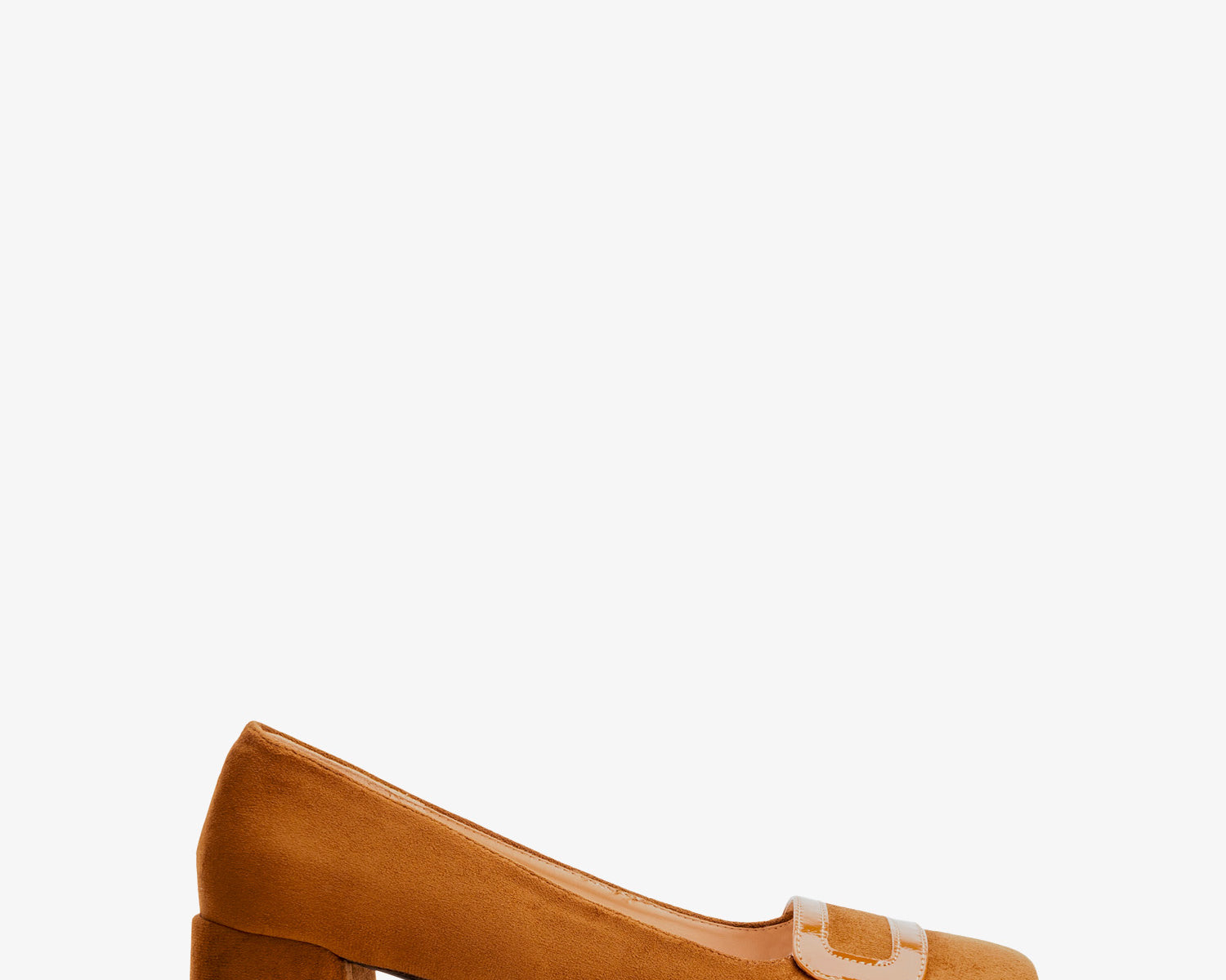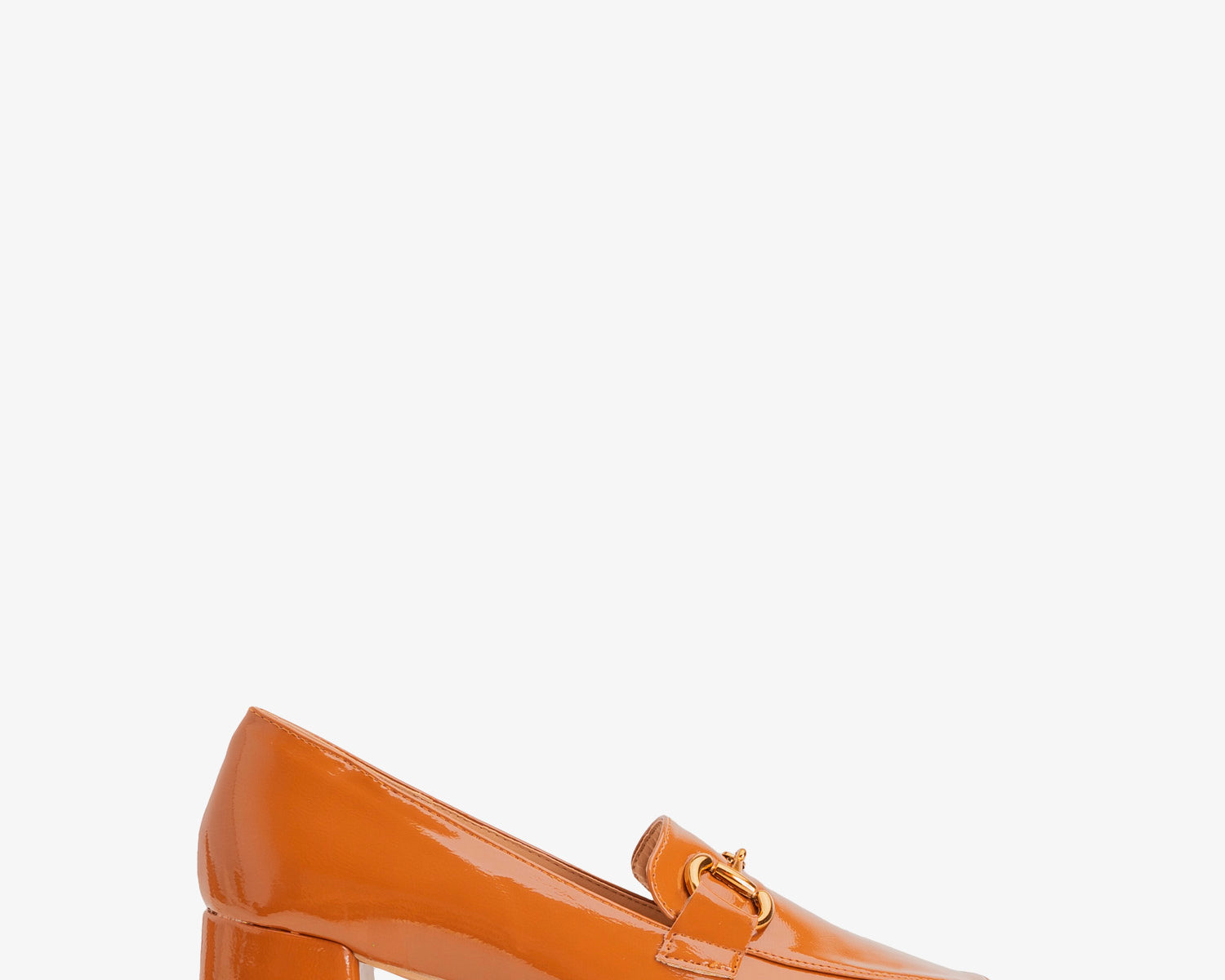 Heeled moccasins in camel colored patent