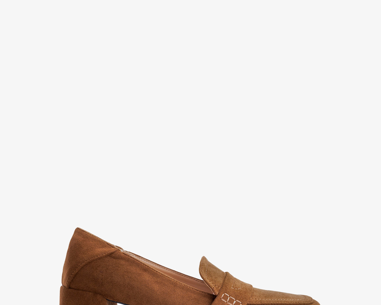 Heeled moccasin in camel colored faux suede