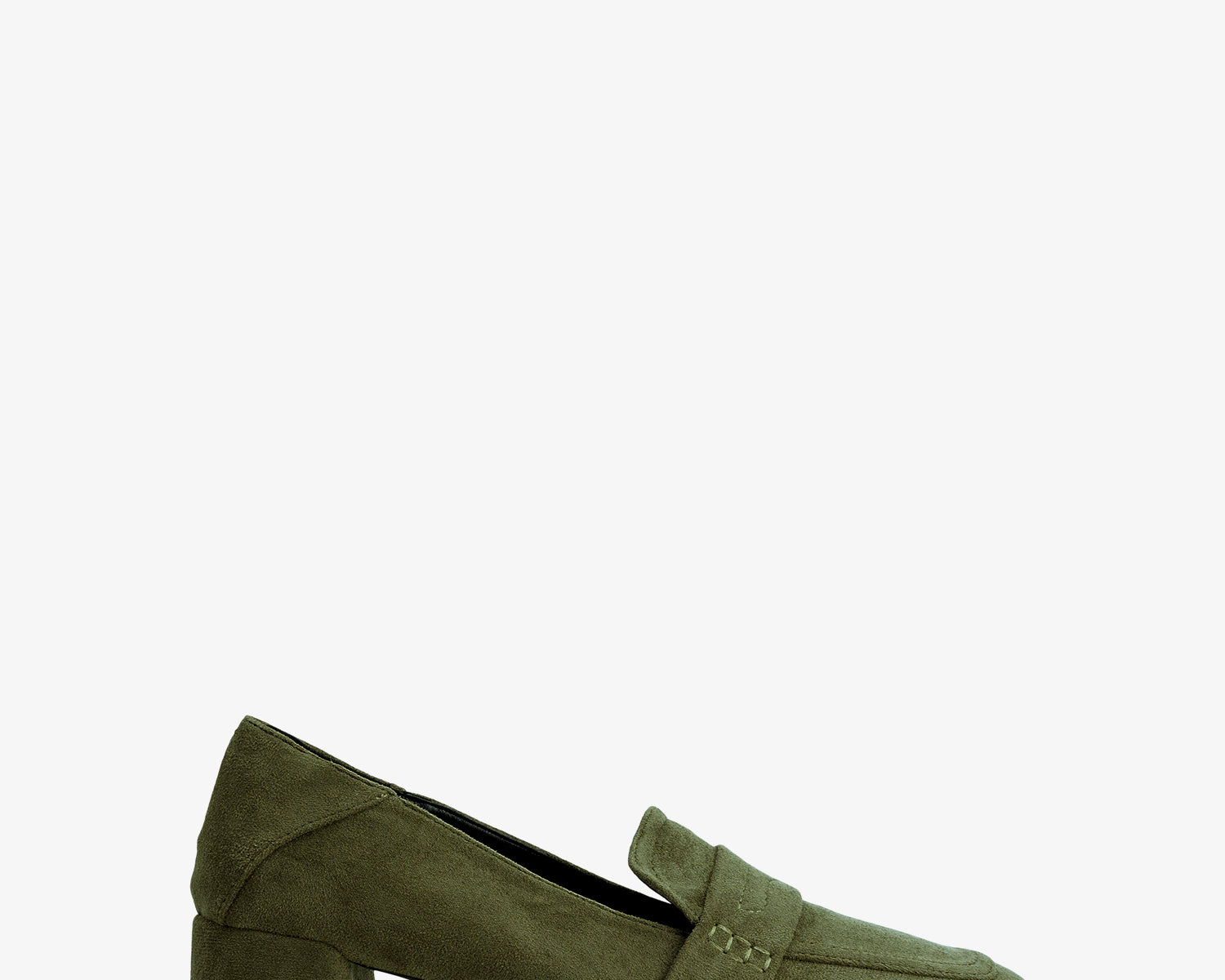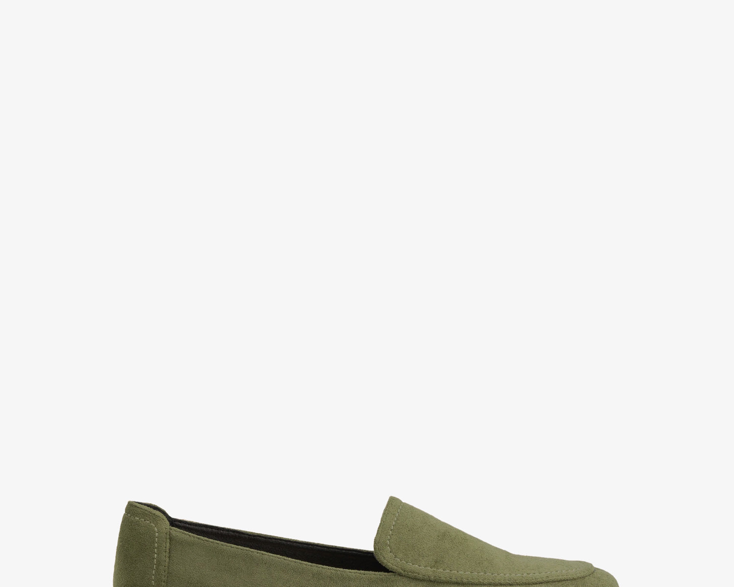 Heeled moccasin in green coloured faux suede