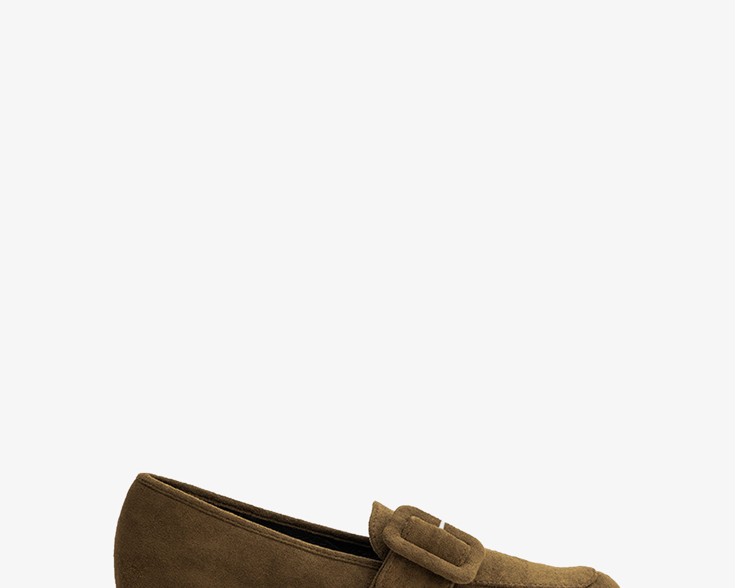 Moccasins in olive faux suede and buckle detail