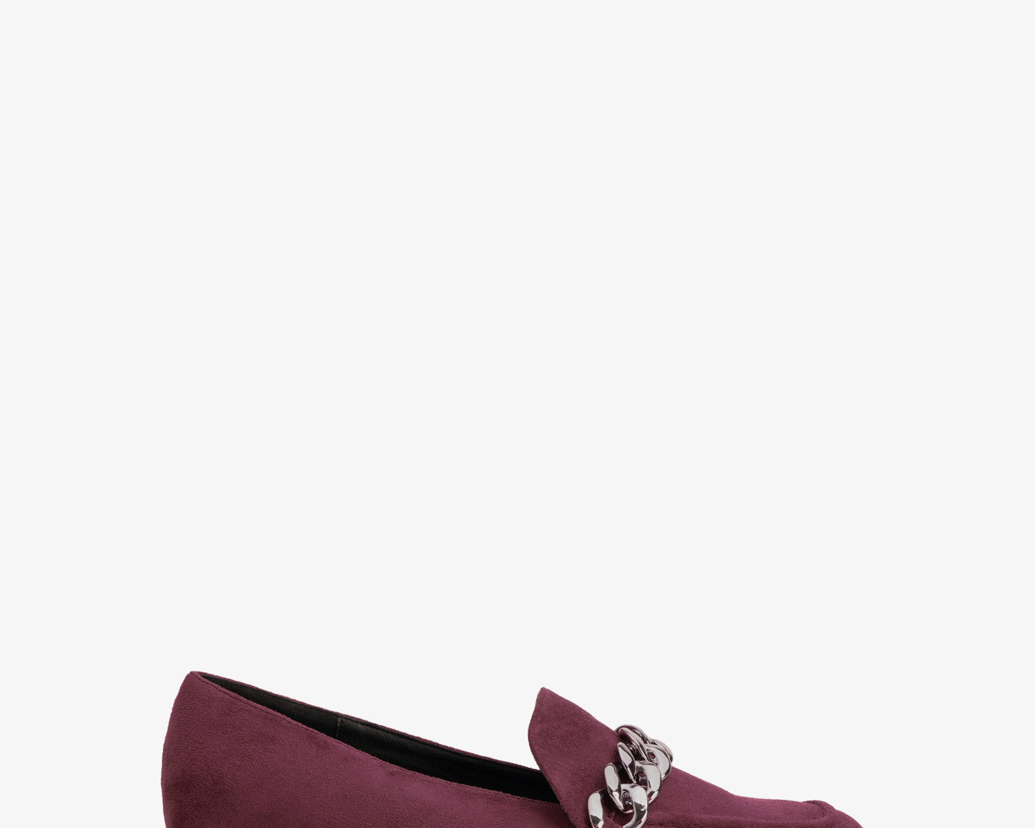 Moccasins in bordeaux faux suede with chain link detail