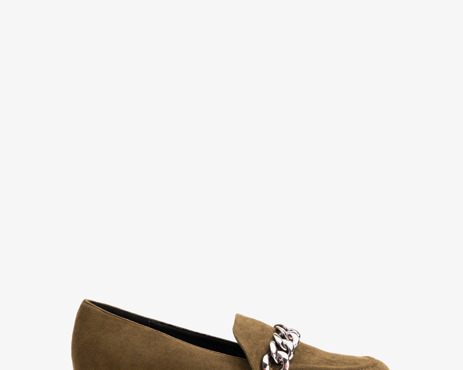 Moccasins in kaki faux suede with chain link detail