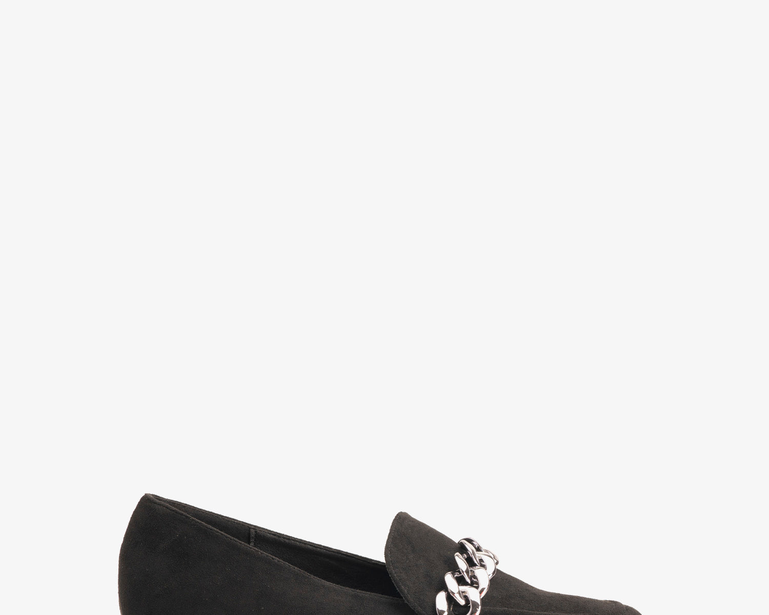 Moccasins in black faux suede with chain link detail