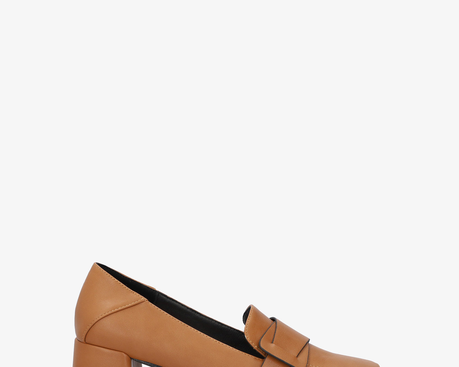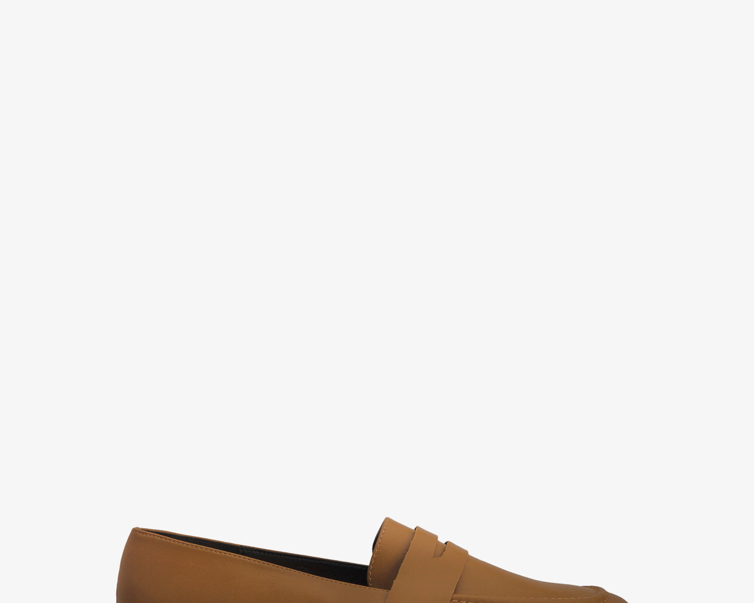 Penny loafer in camel colored faux leather