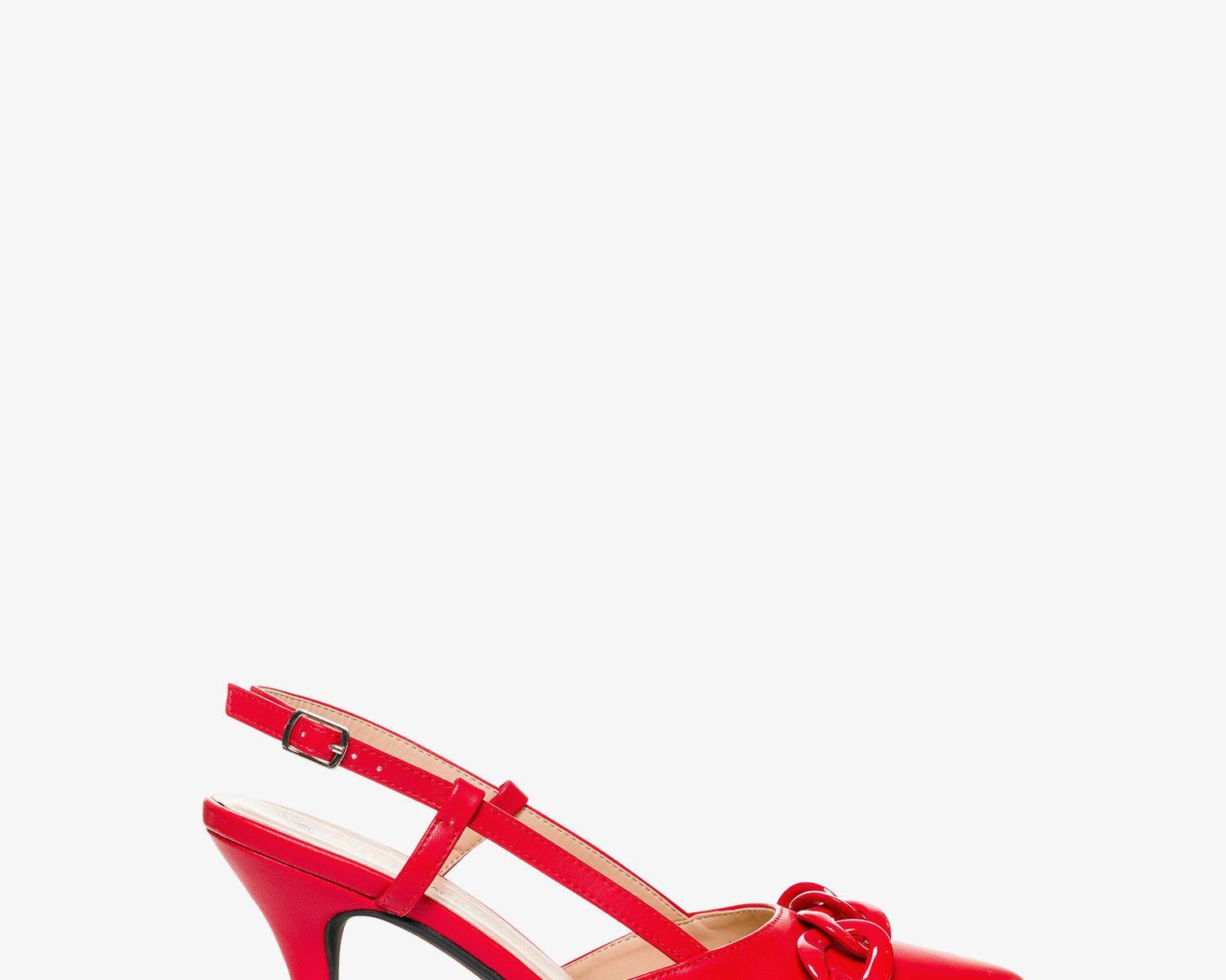 Red faux leather slingback court shoes