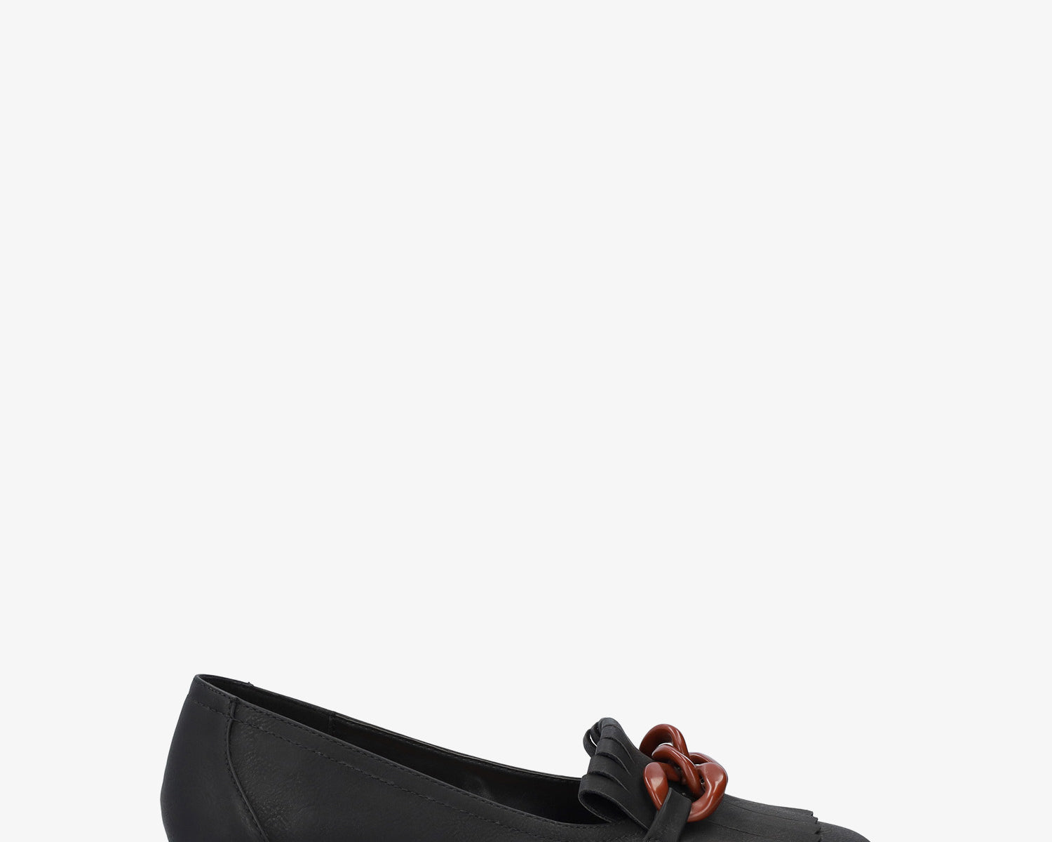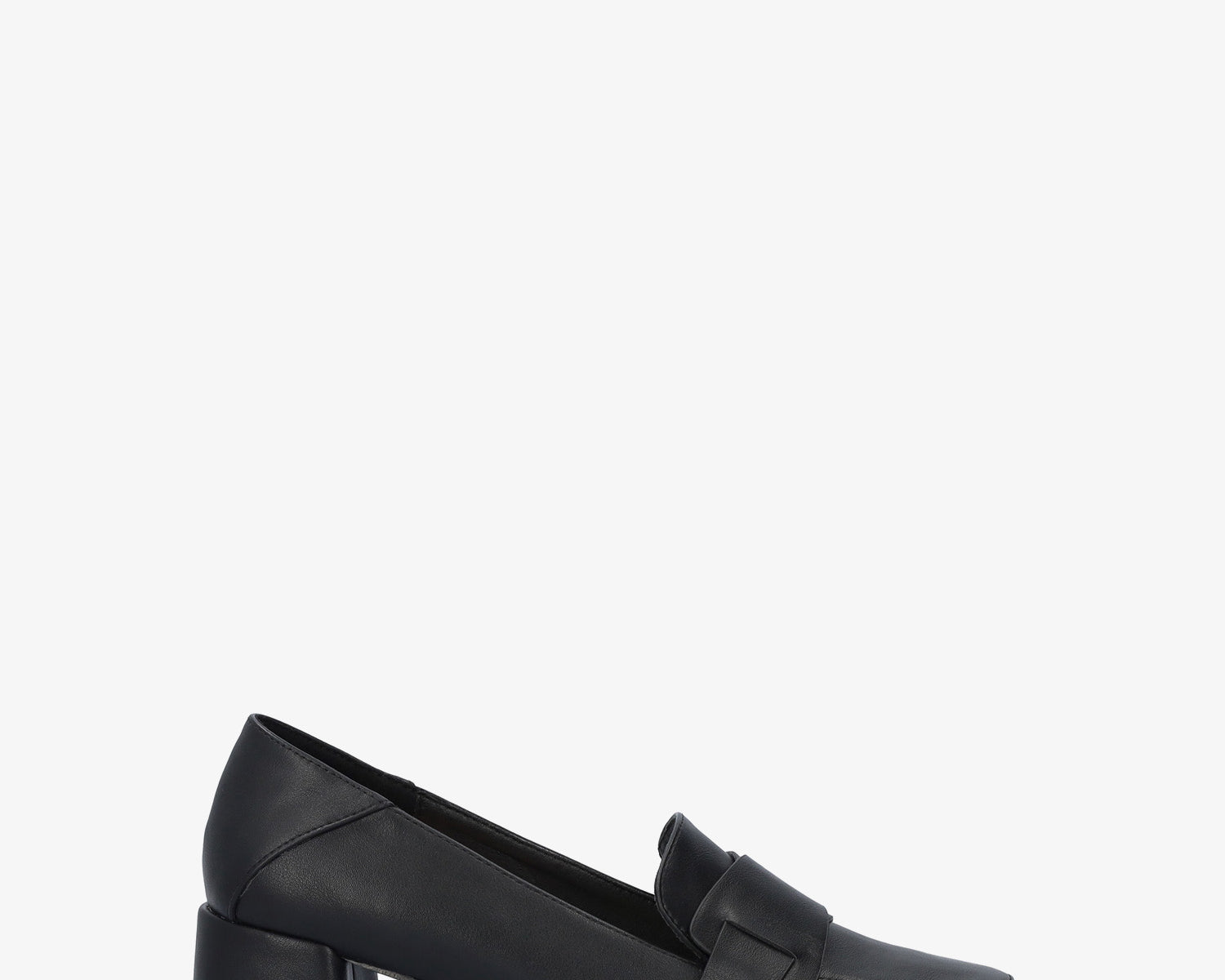 Heeled moccasin in black faux leather