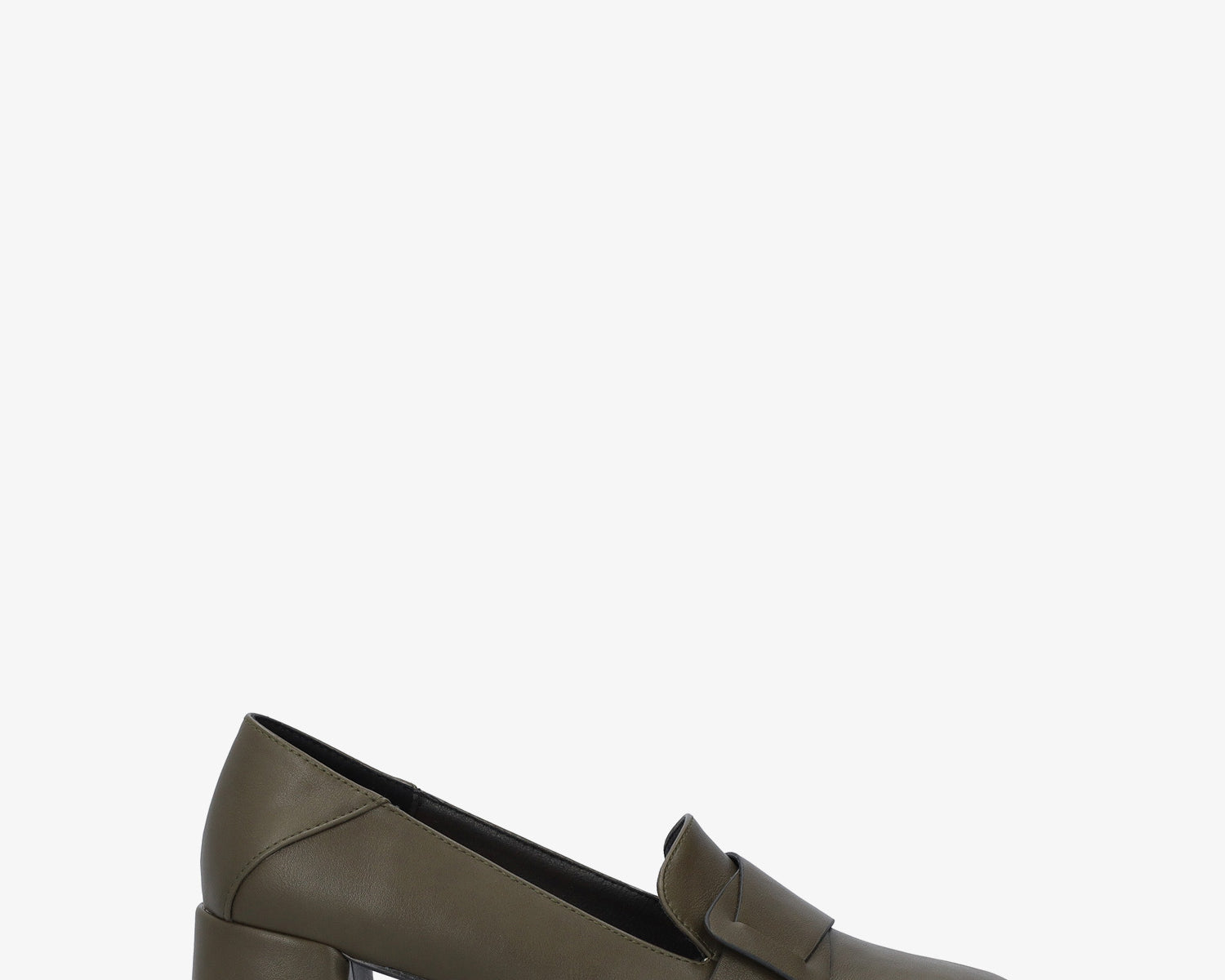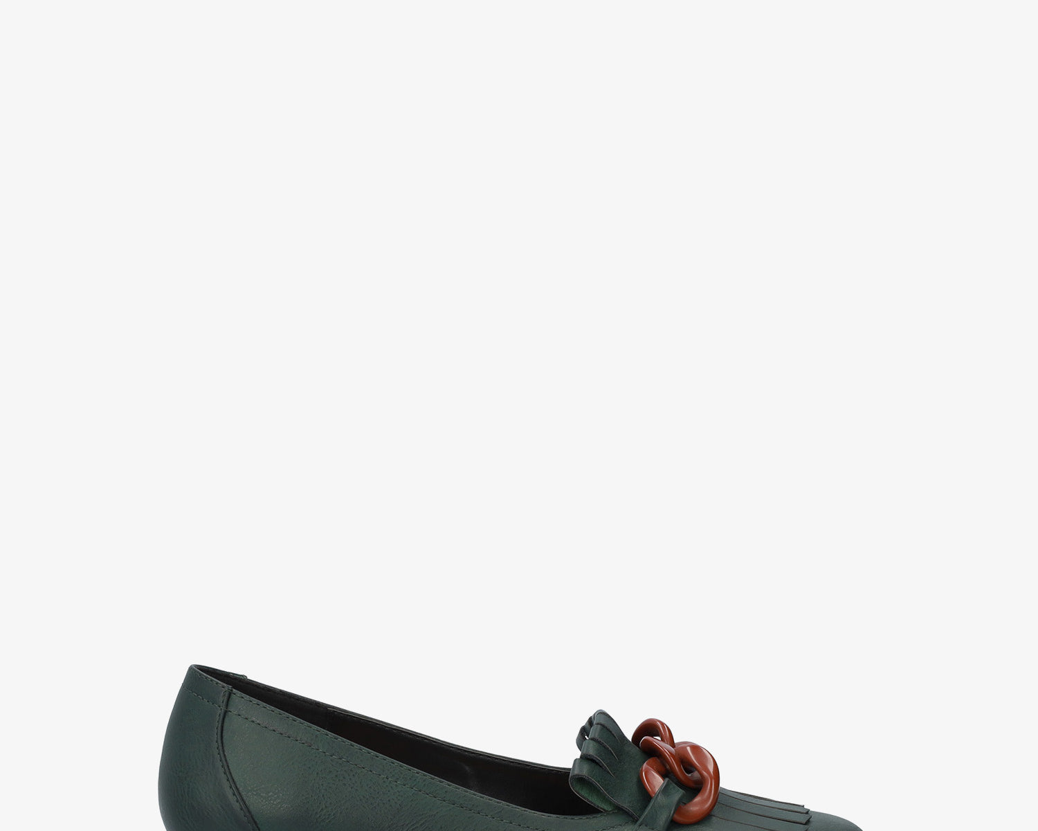 Heeled moccasin in green faux leather