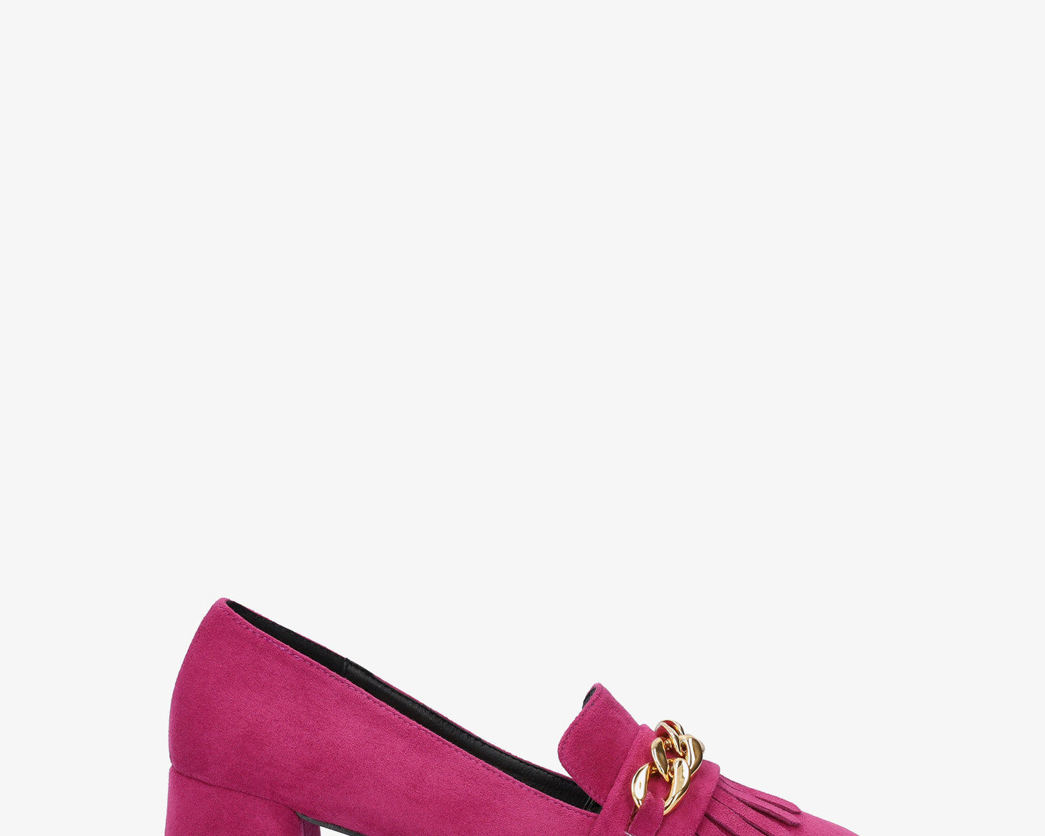 Heeled moccasin in fuxia coloured faux suede
