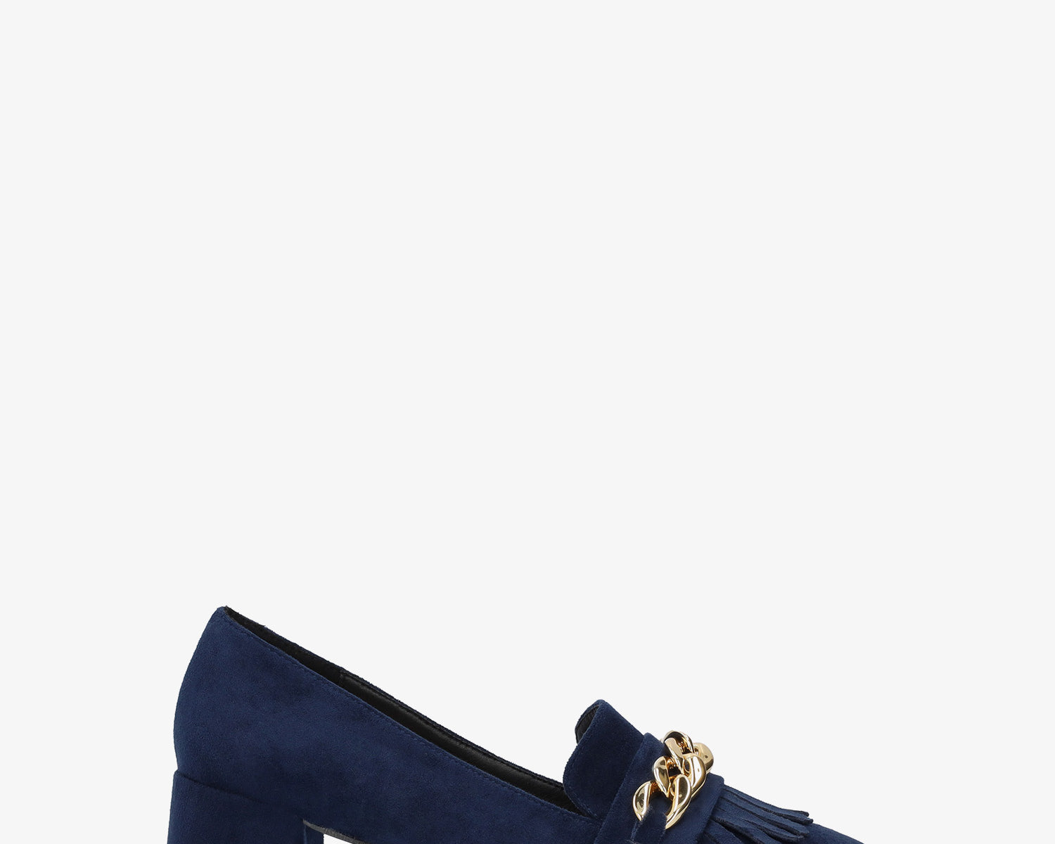 Heeled moccasin in navy coloured faux suede