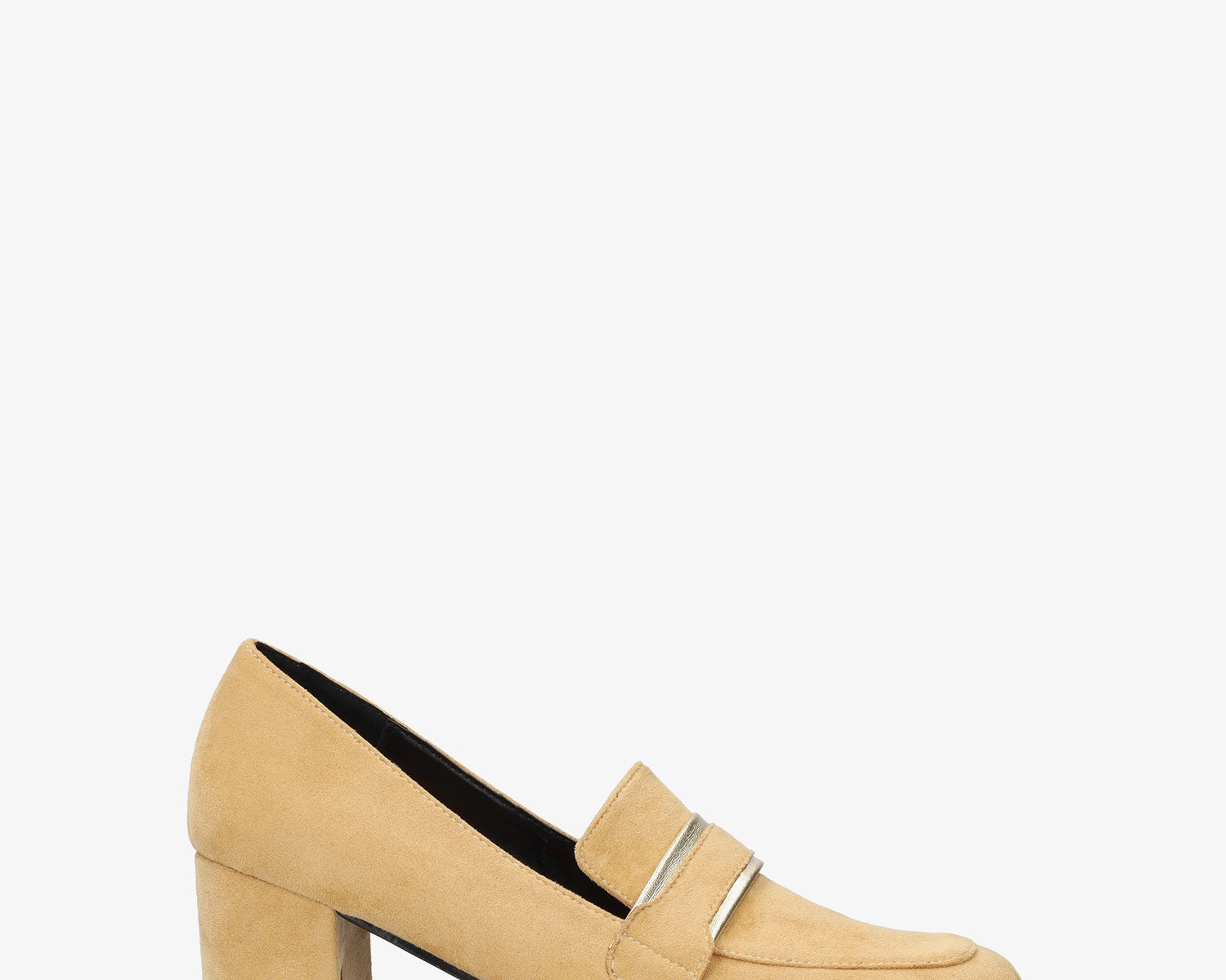Heeled moccasins in beige-colored faux suede