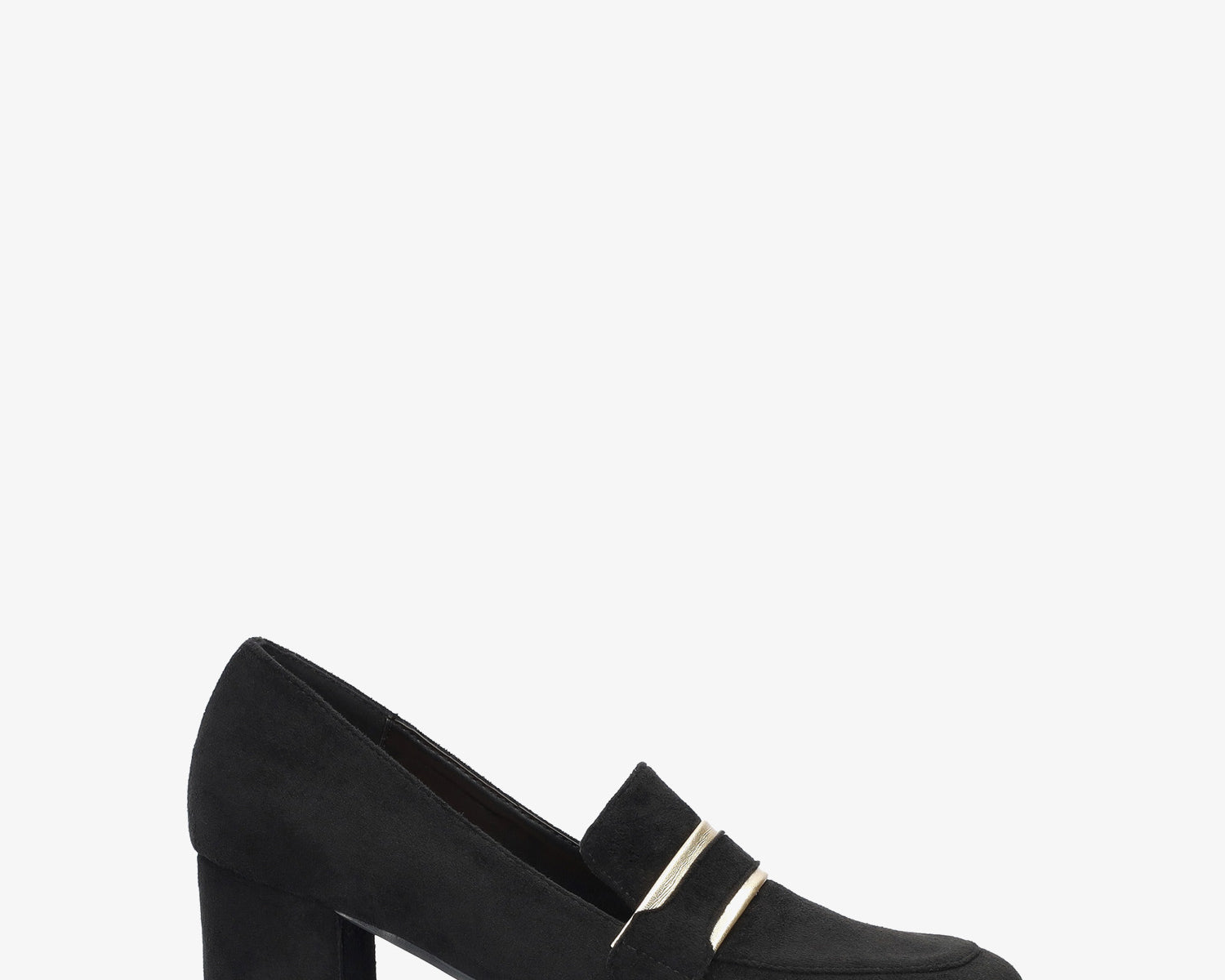 Heeled moccasin in black coloured faux suede