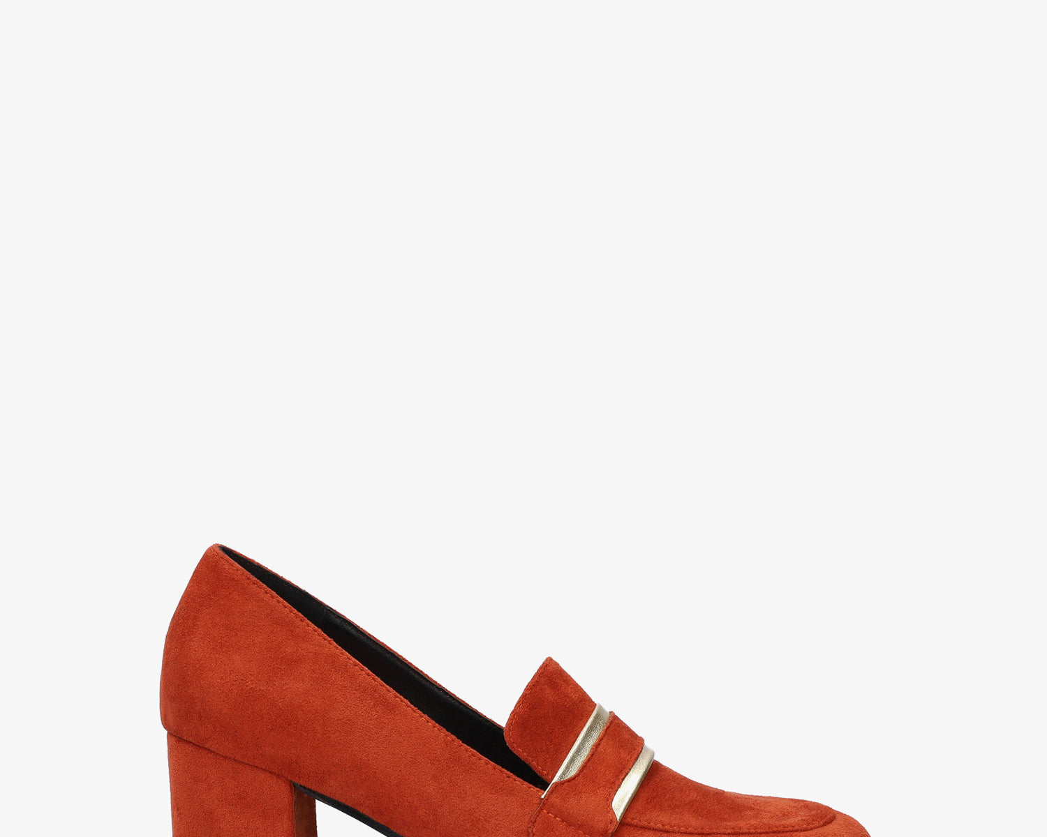 Heeled moccasins in tile-colored faux suede