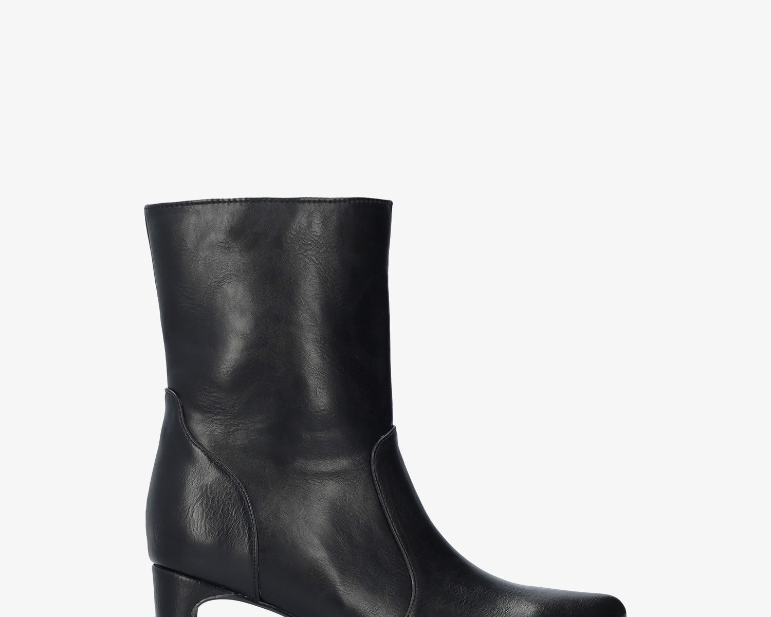 Mid-heel booties in black faux leather