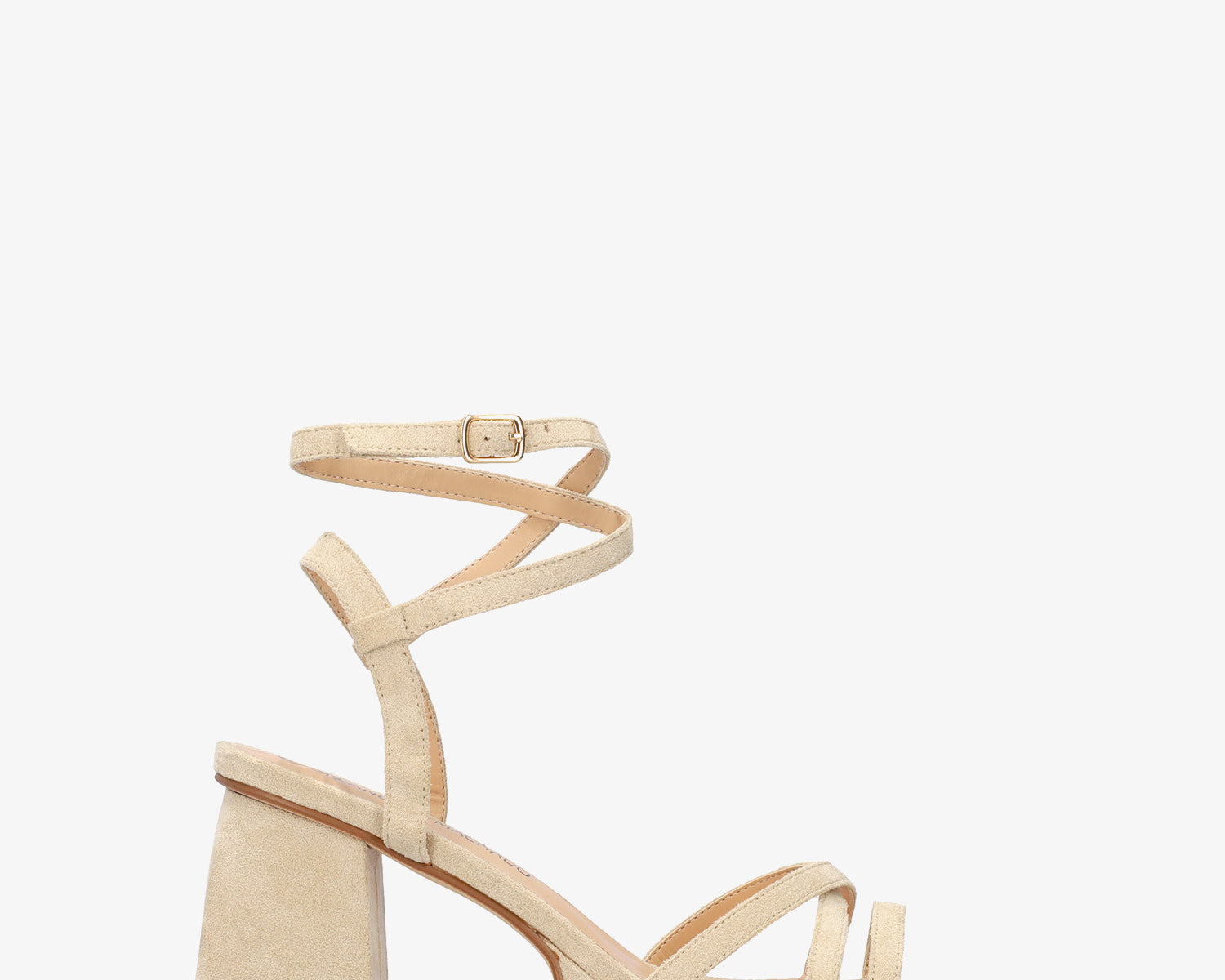 Beige faux suede sandal with squared heel