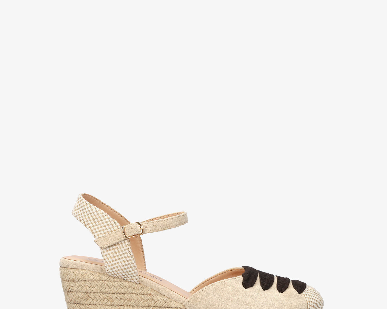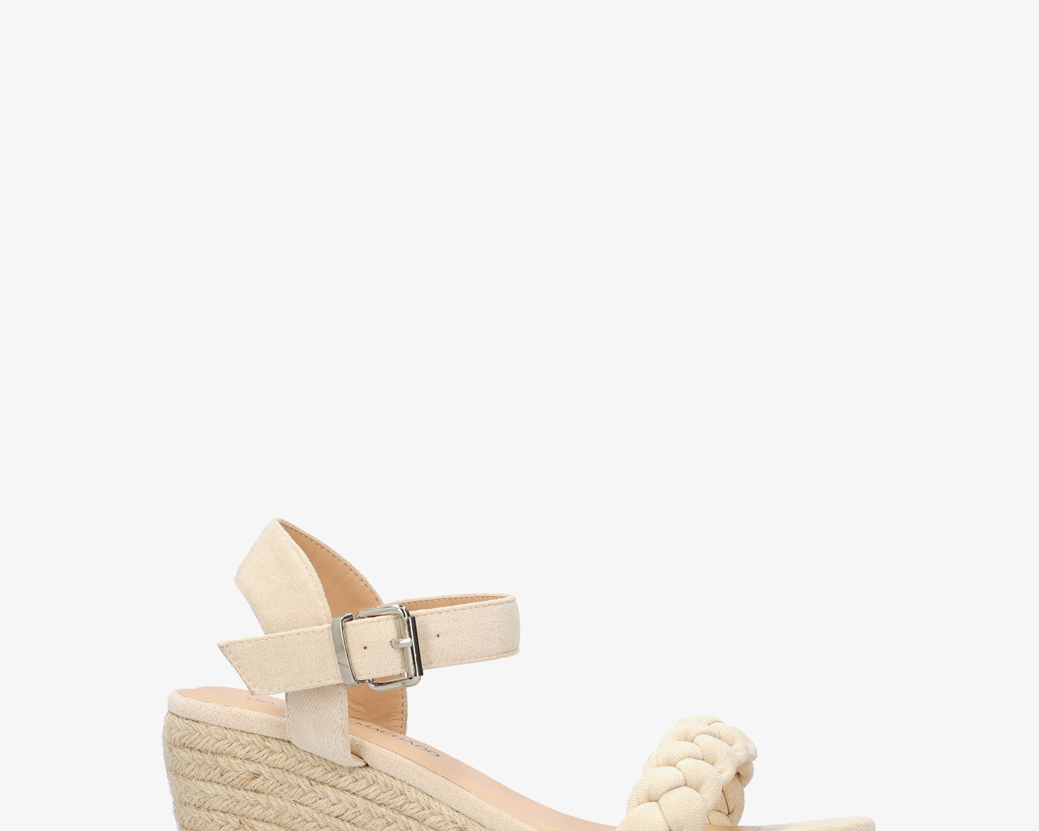 Beige faux suede sandal with a jute wedge
