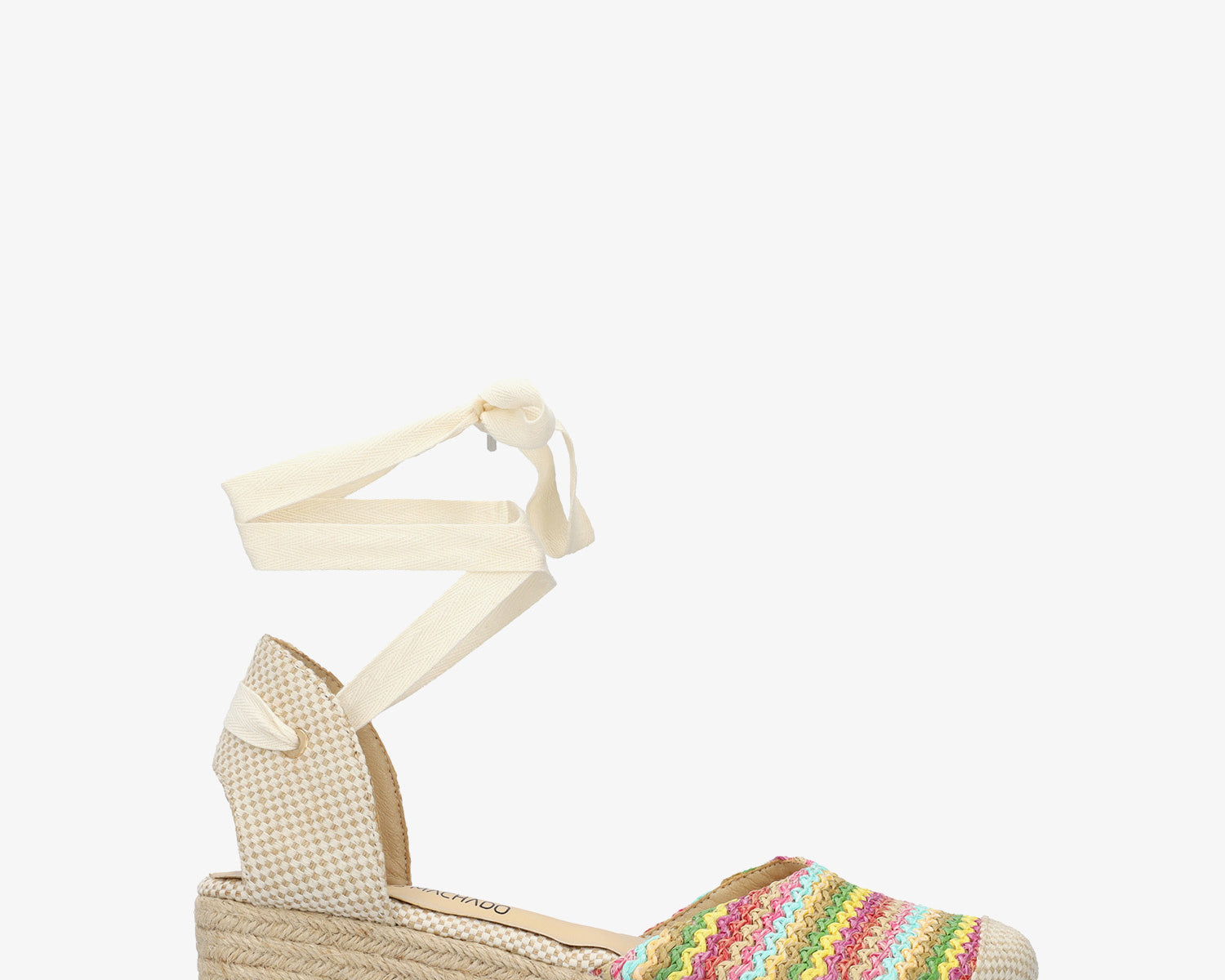 Wedge sandals in multi-colored fabric with jute wedge