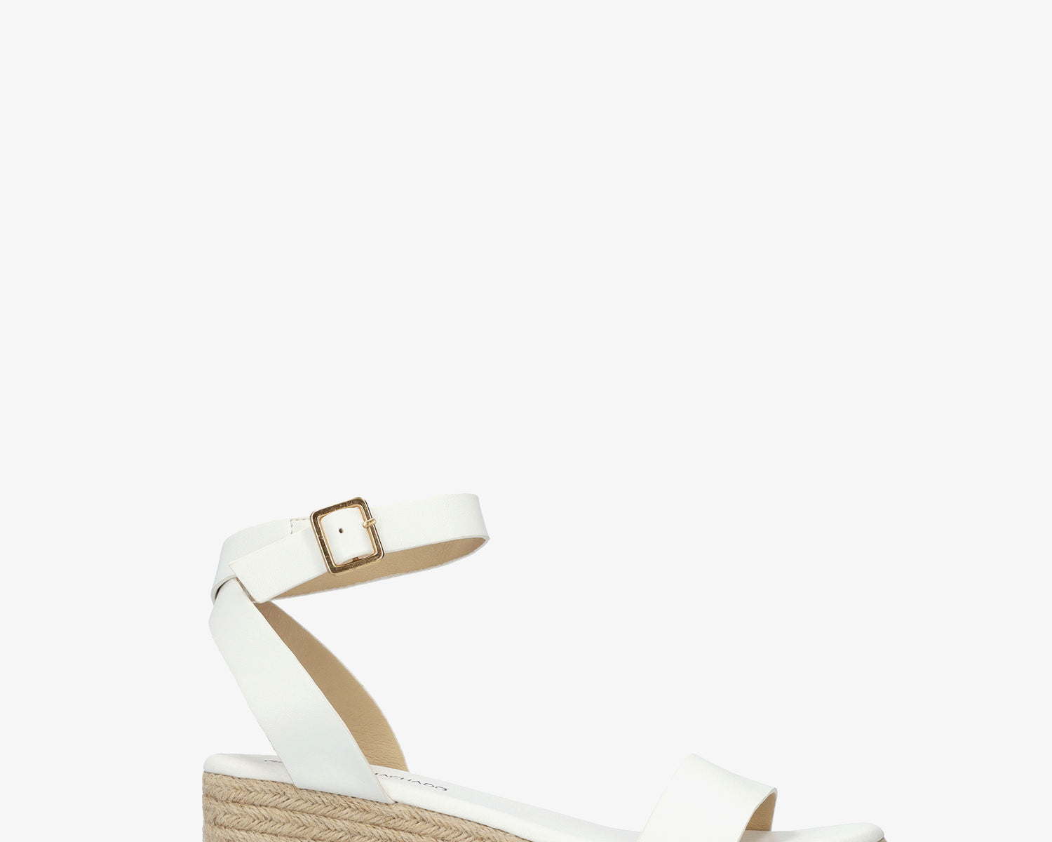 White soft sandals with a jute wedge