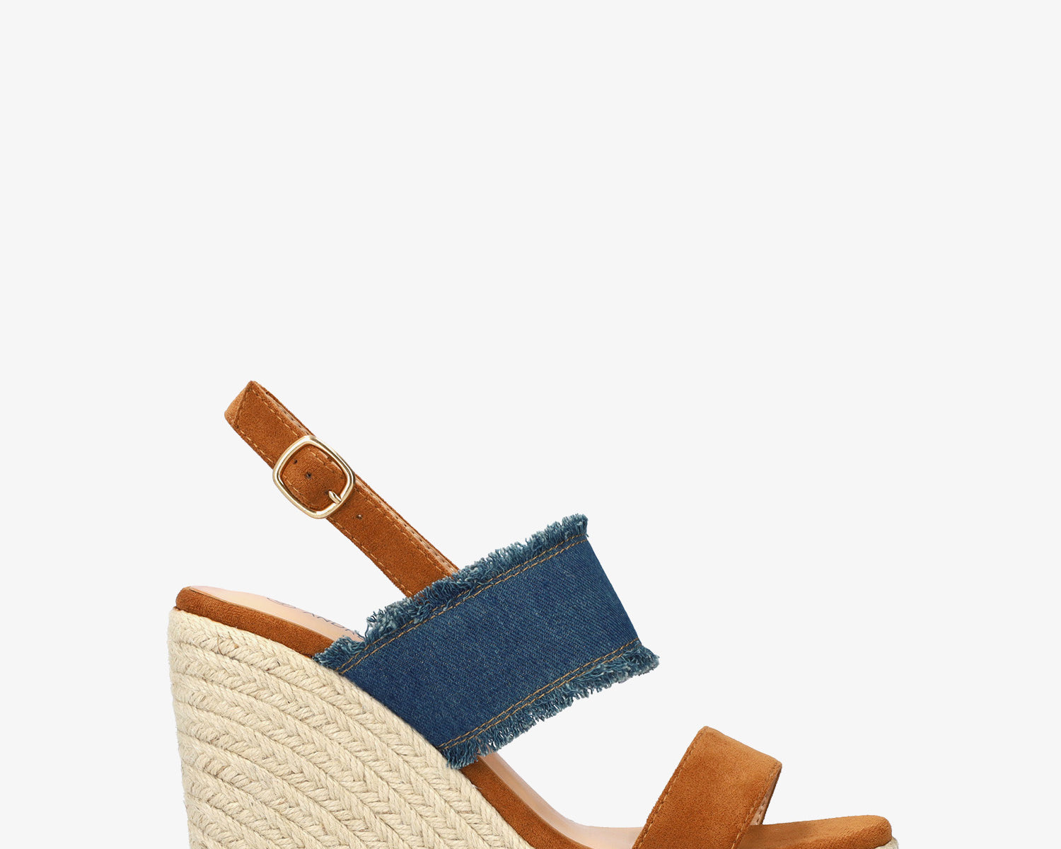 Soft combined brown sandals with jute wedge